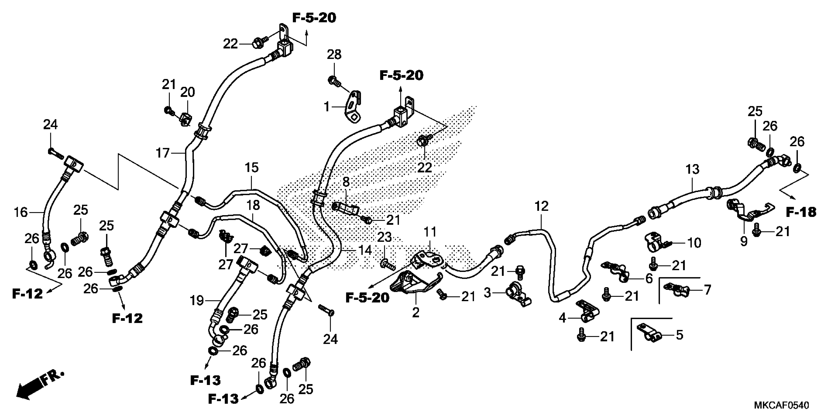 Honda GL1800DA2AC (19) MOTORCYCLE, JPN, VIN# JH2SC797-KK100001 BRAKE HOSE@BRAKE PIPE Diagram