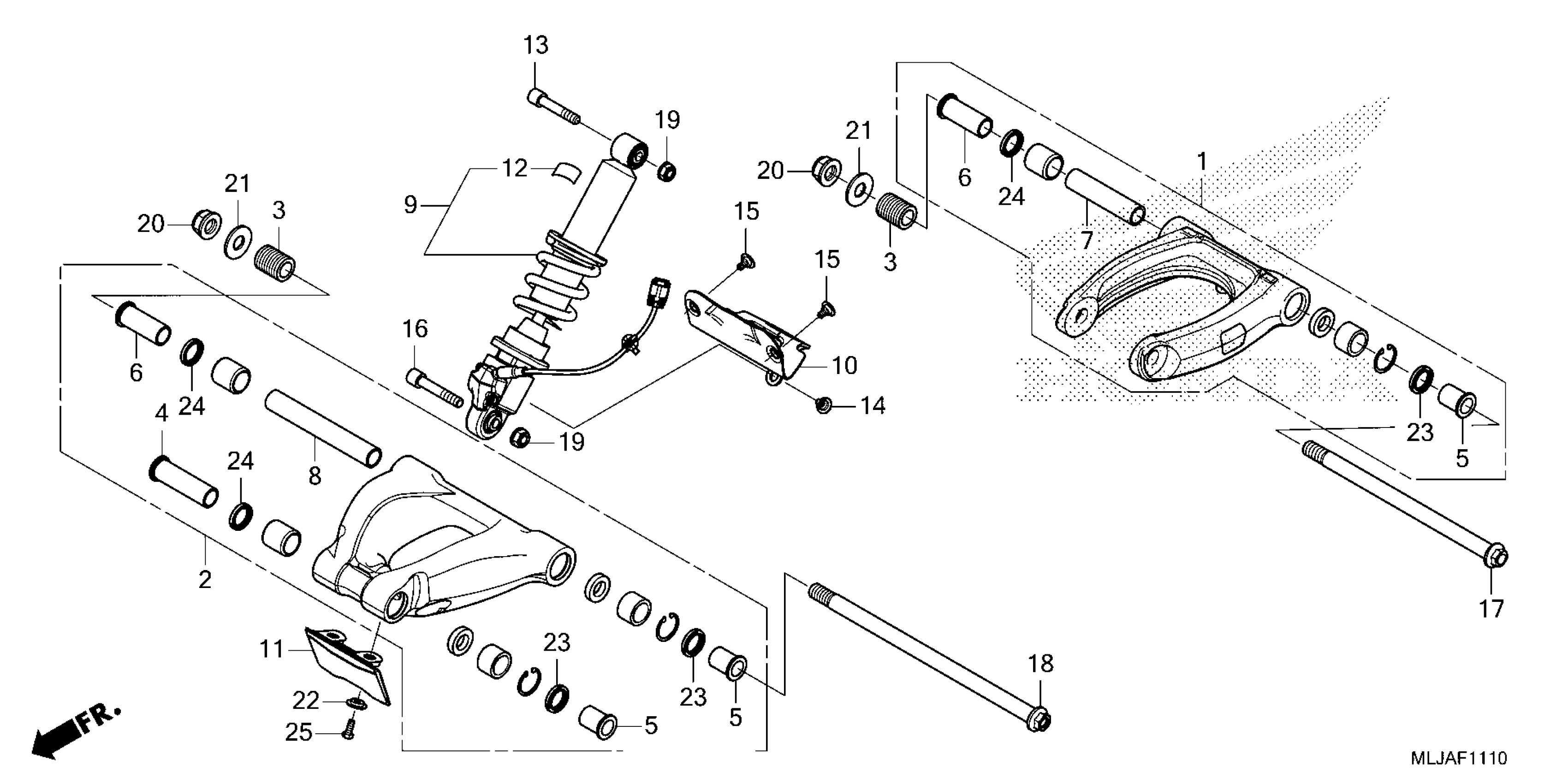 Honda GL1800DA2AC (24) MOTORCYCLE, JPN, VIN# JH2SC797-RK600001 TO JH2SC797-RK699999 CUSHION ARM Diagram