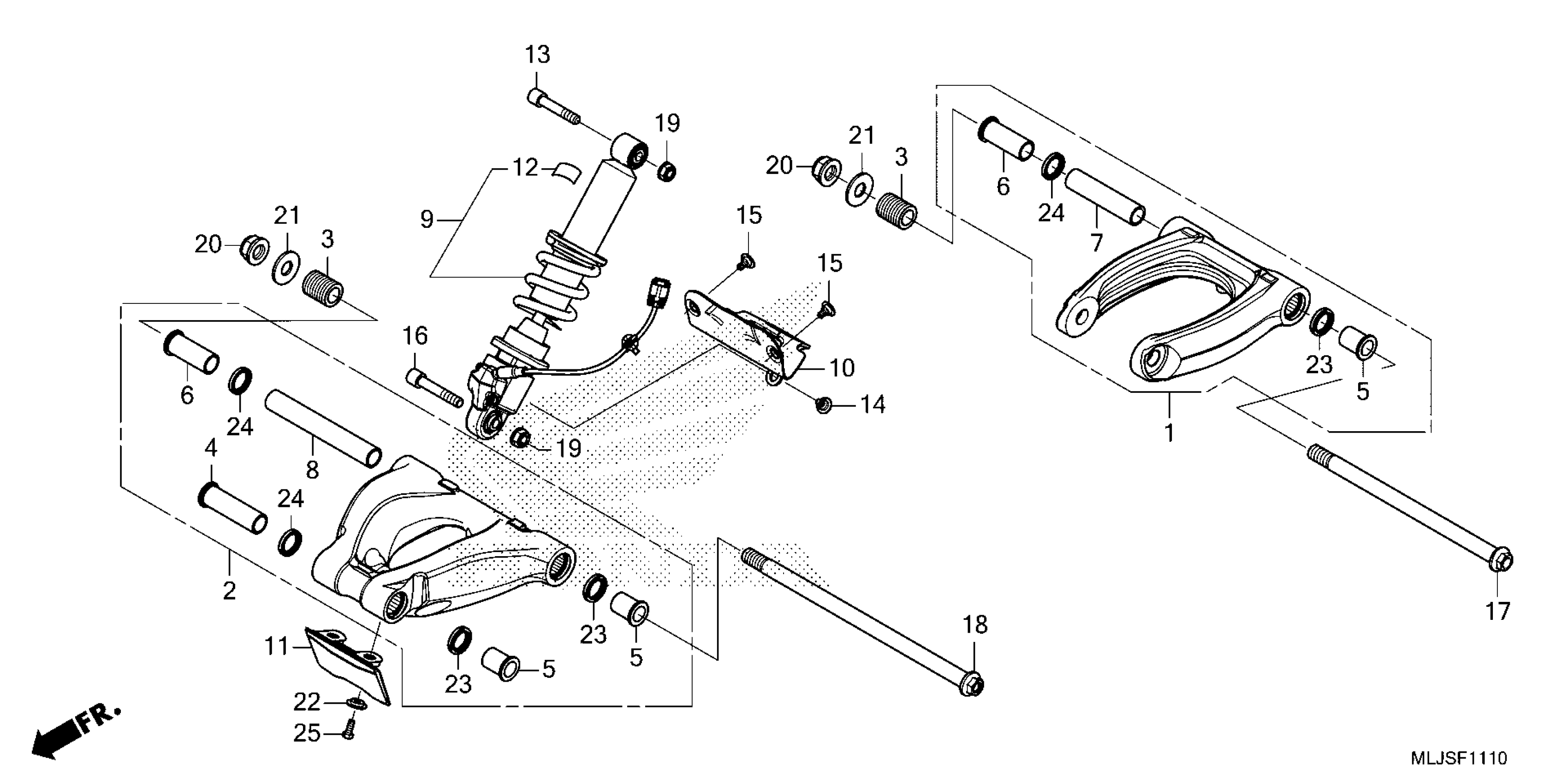 Honda GL1800DA2AC (25) MOTORCYCLE, JPN, VIN# JH2SC797-SK700001 TO JH2SC797-SK799999 CUSHION ARM Diagram