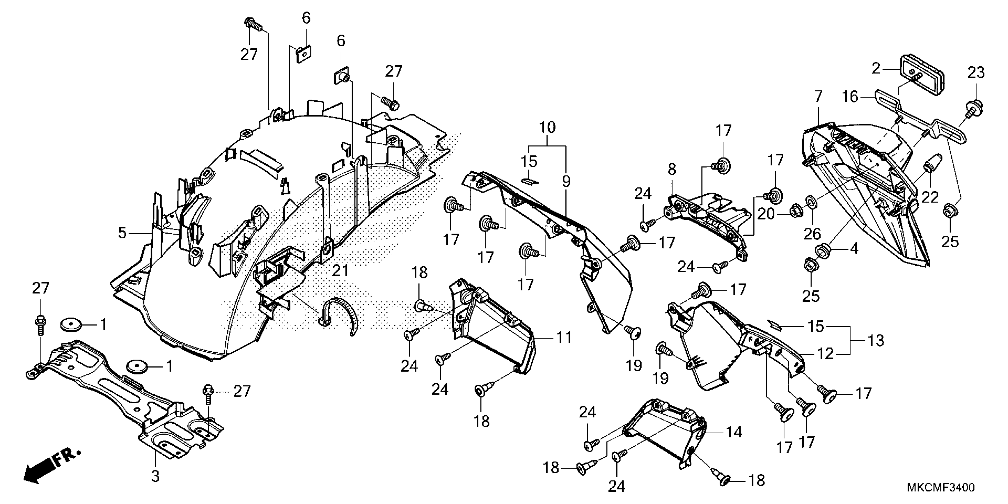 Honda GL1800DA3AC (21) MOTORCYCLE, JPN, VIN# JH2SC797-MK300001 REAR FENDER Diagram