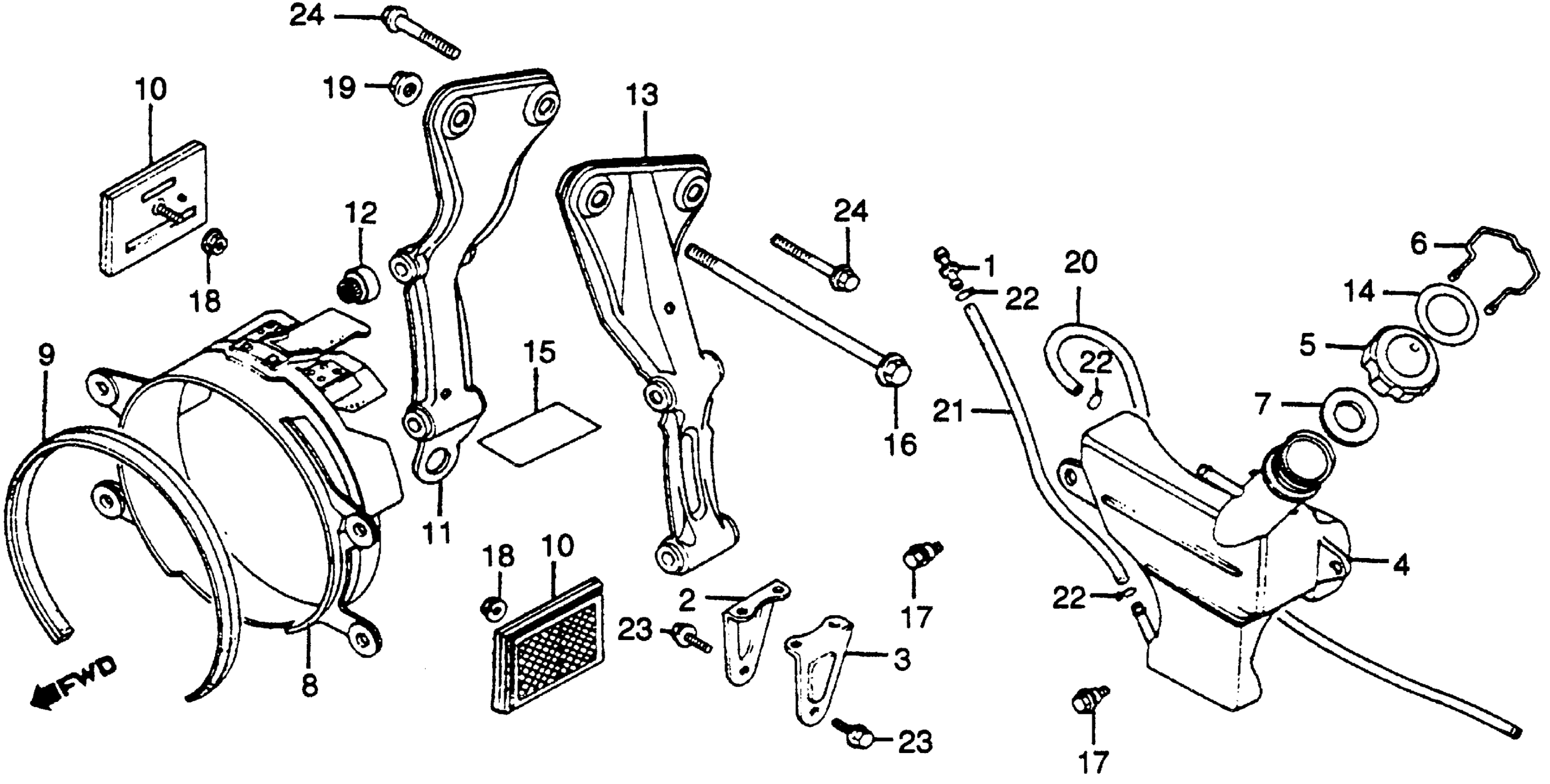 RADIATOR SHROUD + RESERVE TANK