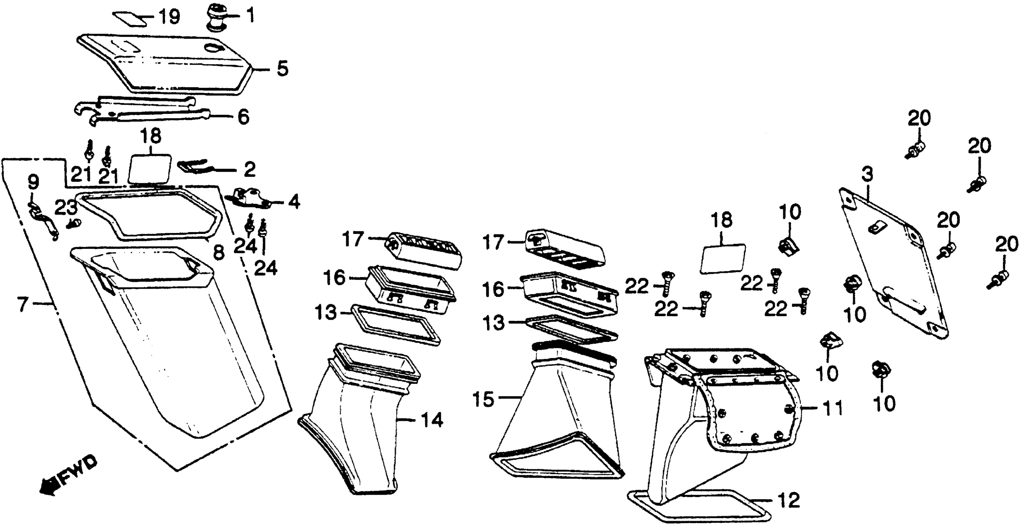 Honda GL500IA (82) SILVER WING INTERSTATE, JPN, VIN# JH2PC021-CM100001 GL500I FAIRING POCKET + AIR DUCT Diagram
