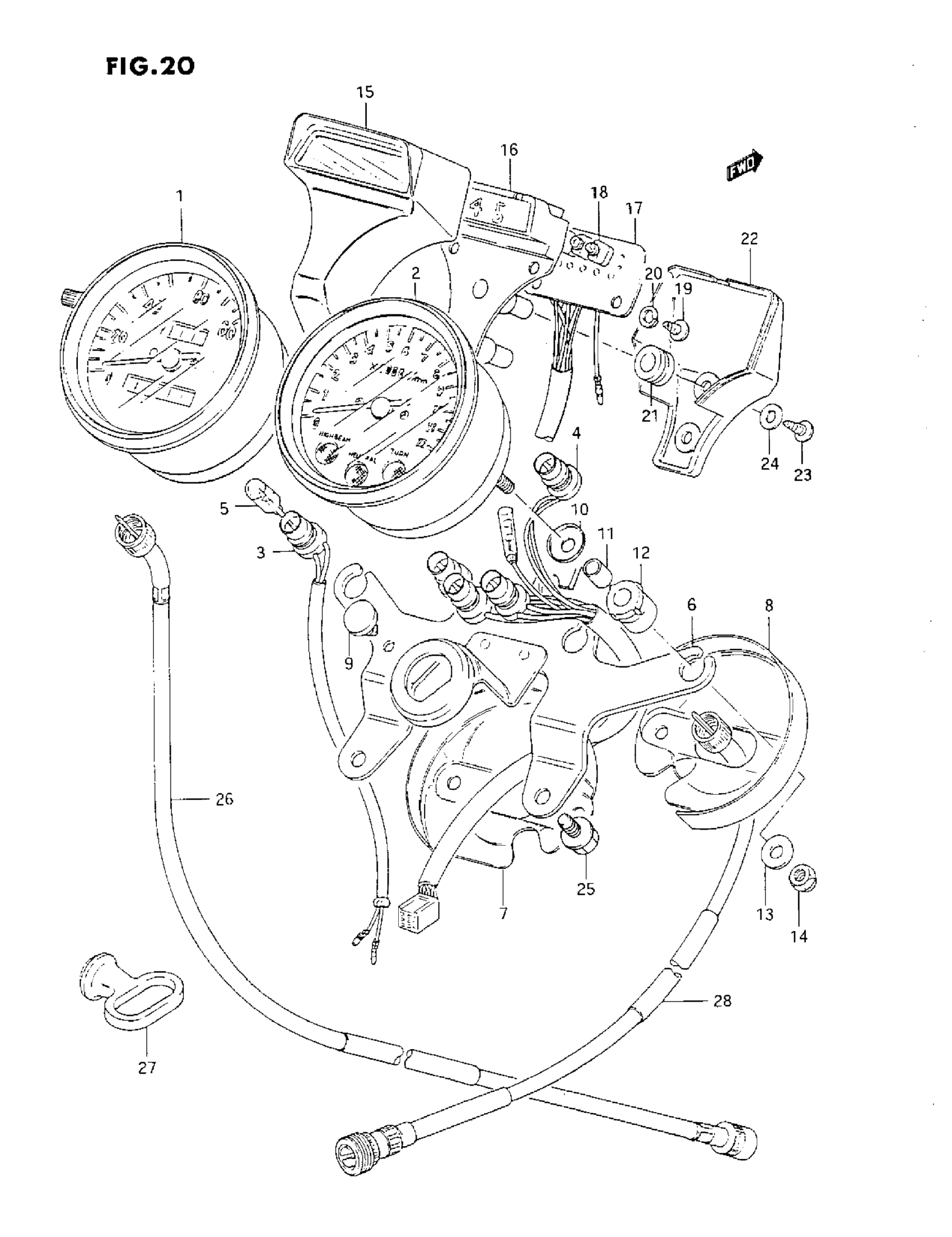 Suzuki GN125E (1993) SPEEDOMETER-TACHOMETER Diagram