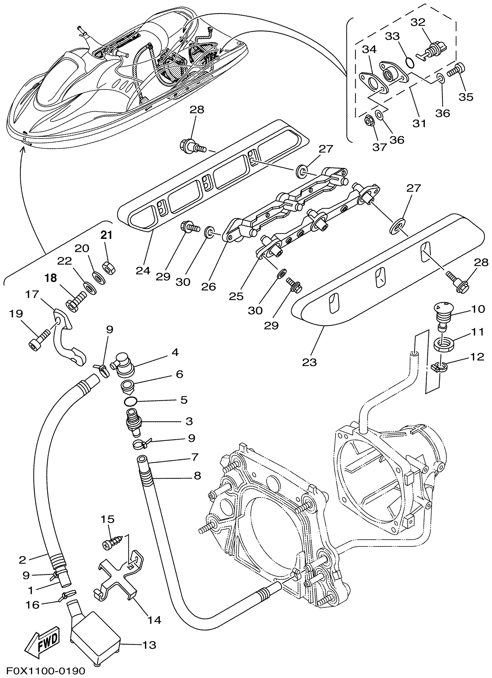 Yamaha GP1200AZ (GP1200R) F0X3 2001 HULL DECK Diagram
