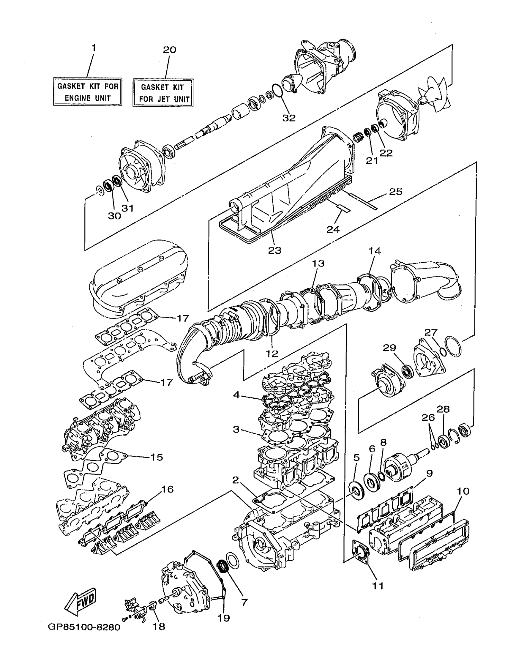 Yamaha GP1200W (WAVE RUNNER GP1200) 1998 REPAIR KIT 1 Diagram