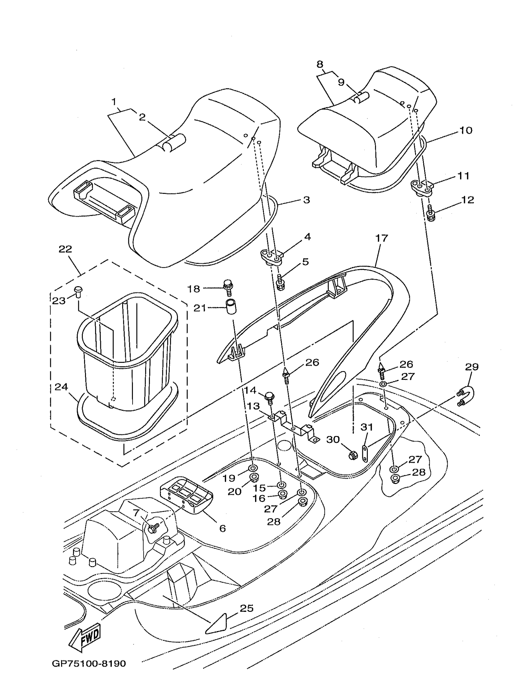 Yamaha GP1200W (WAVE RUNNER GP1200) 1998 SEAT UNDER LOCKER Diagram