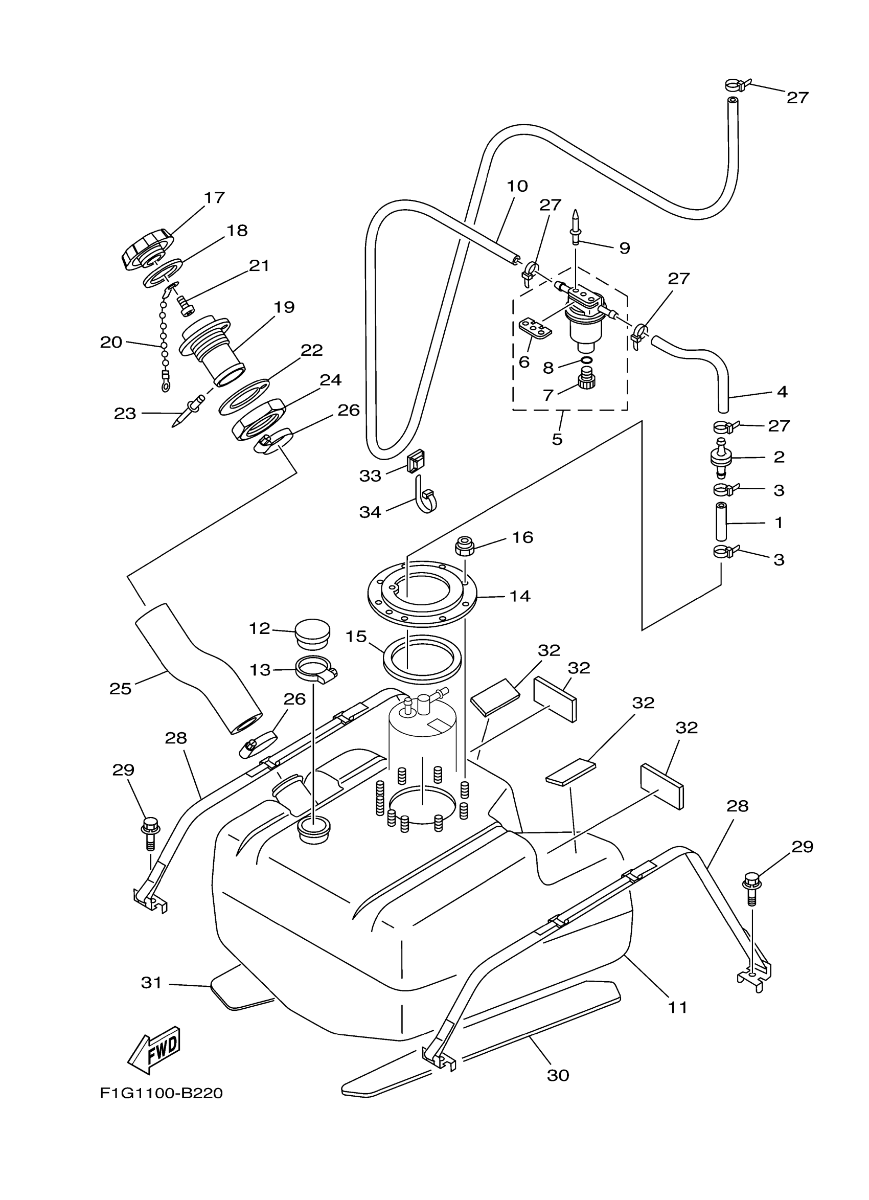 Yamaha GP1300D (WaveRunner GP1300R) F1G7 2005 FUEL TANK Diagram