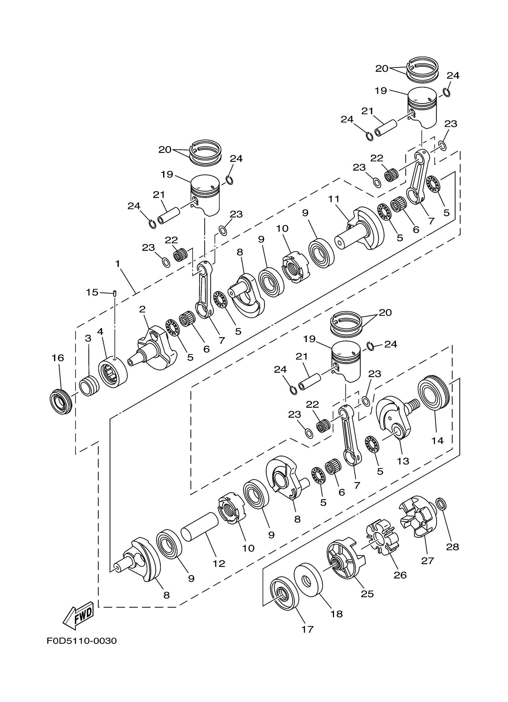 Yamaha GP1300E (WaveRunner GP1300R) F1GA 2006 CRANKSHAFT PISTON Diagram