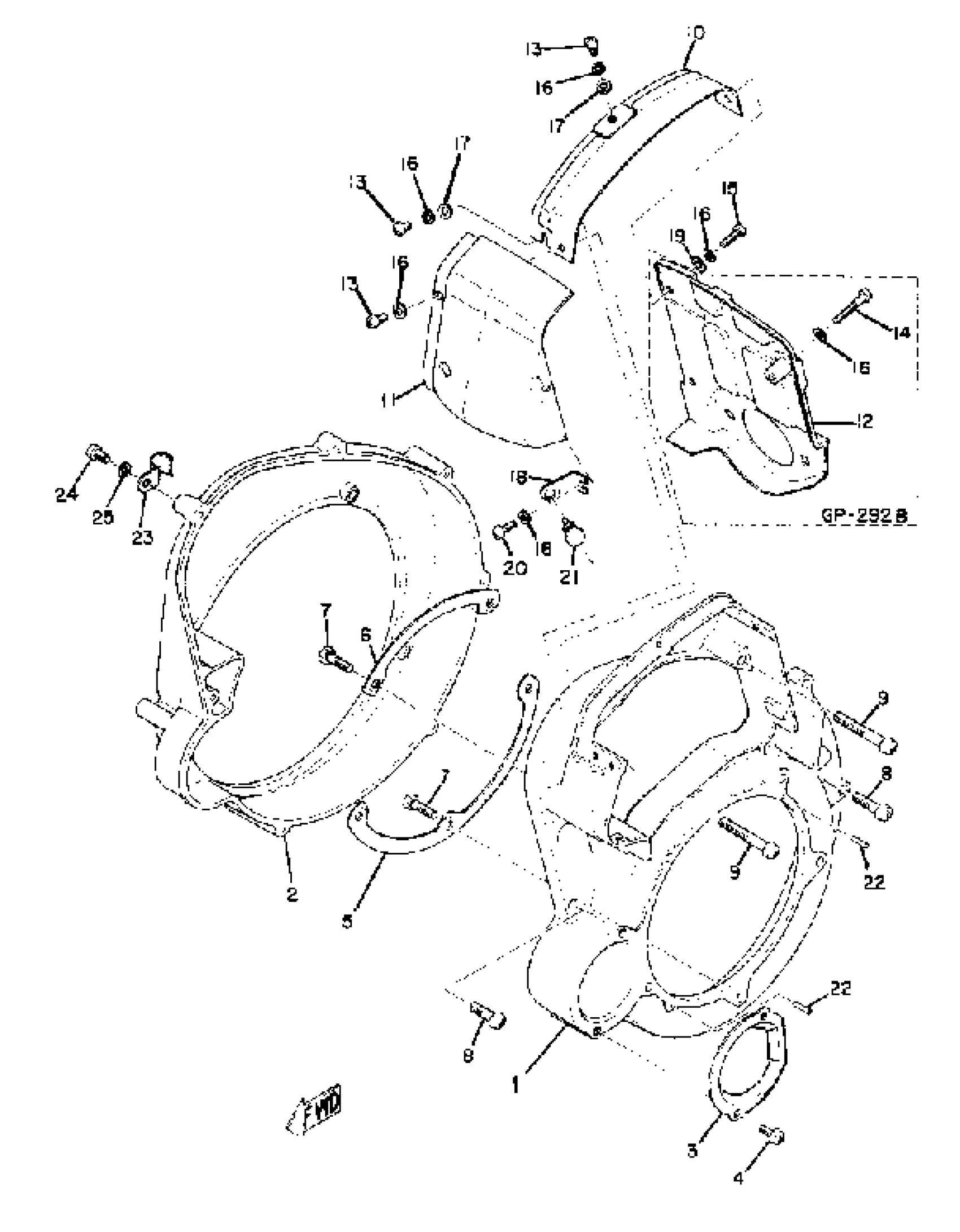 Yamaha GP292 1972 FAN CASE - AIR SHROUD Diagram