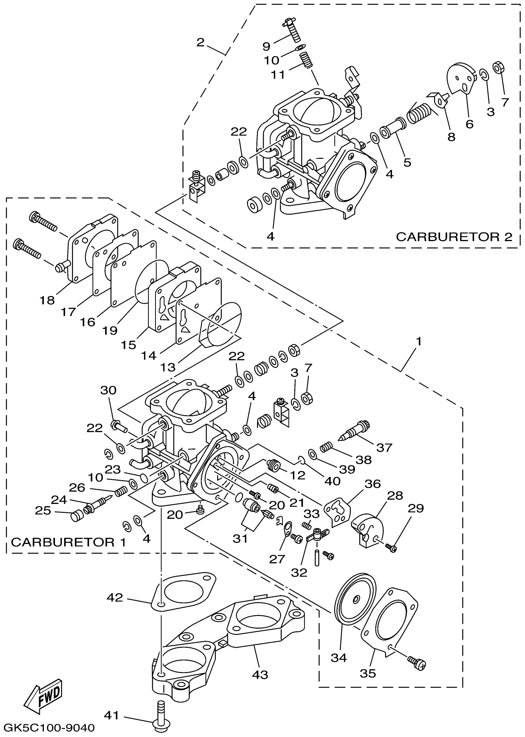 Yamaha GP760W (WAVE RUNNER GP760) GP75 1998 CARBURETOR Diagram