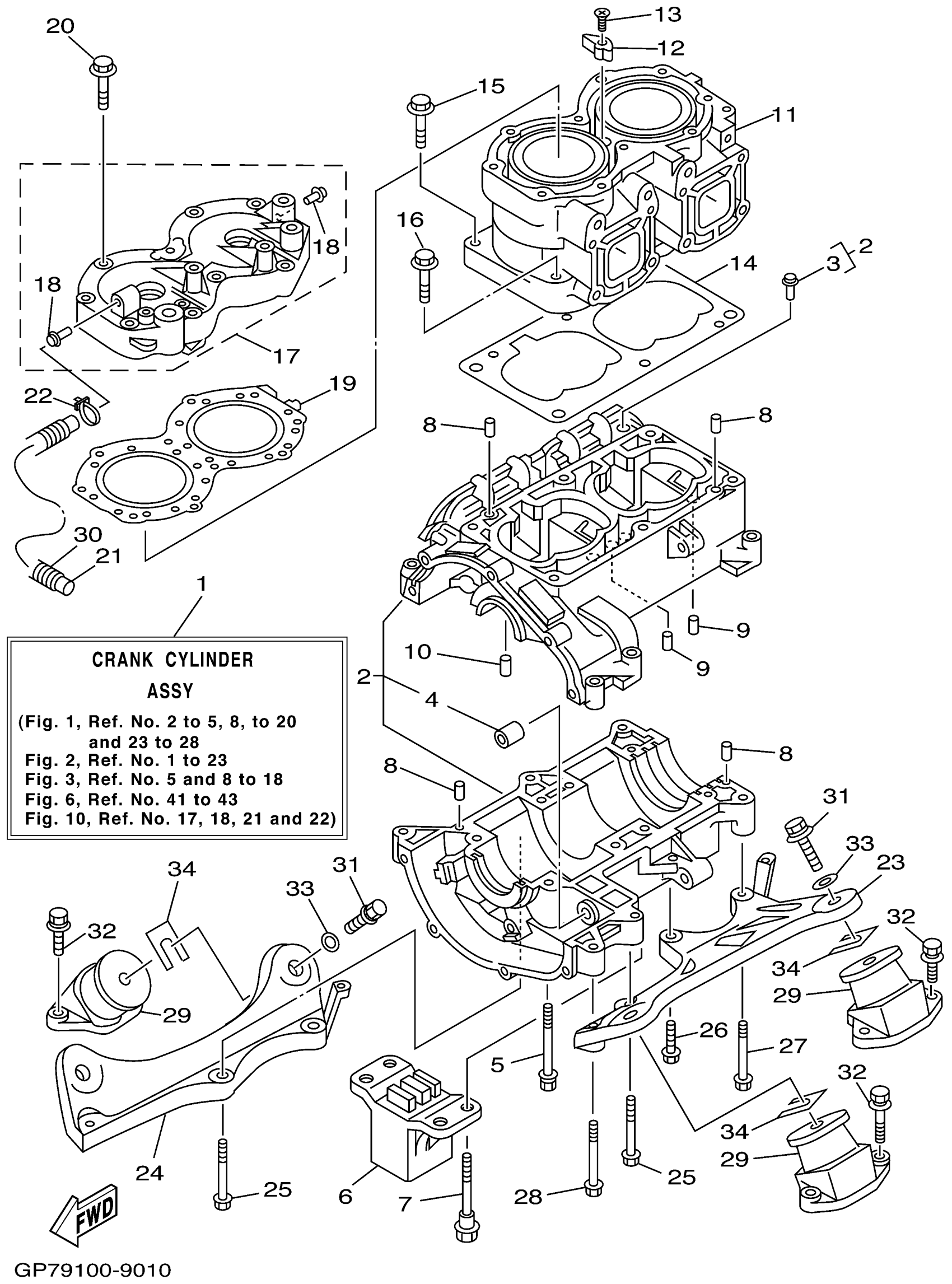 Yamaha GP760X (WAVE RUNNER GP760) GP79 1999 CYLINDER CRANKCASE Diagram