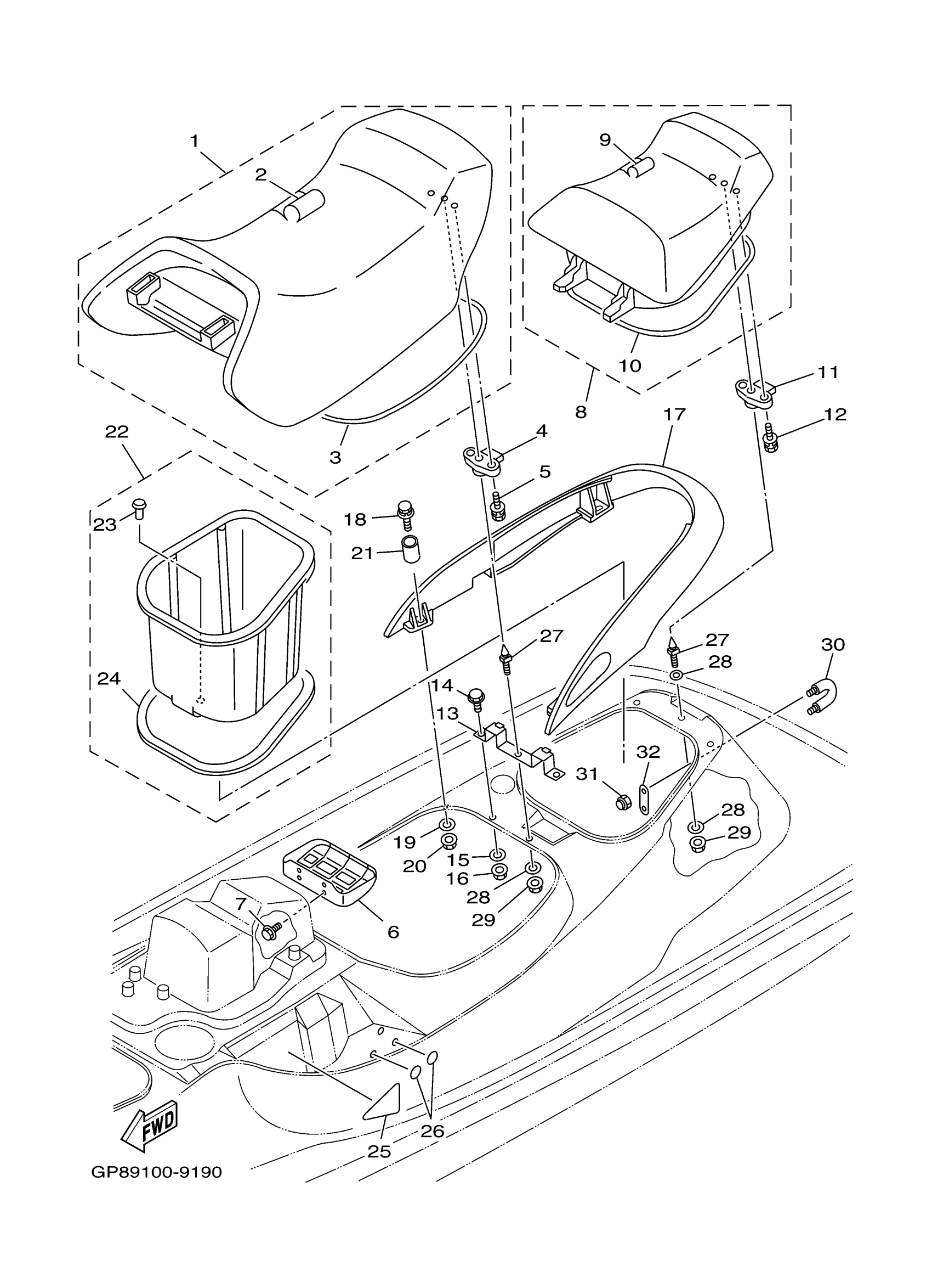 Yamaha GP760Y (GP760) GP7C3 2000 SEAT UNDER LOCKER Diagram