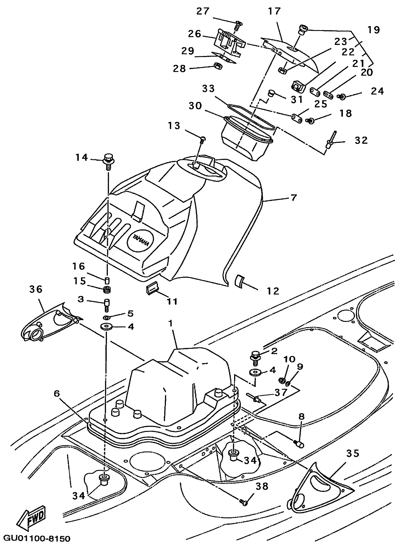 Yamaha GP800W (WAVE RUNNER GP800W) GU01 1998 ENGINE HATCH 1 Diagram