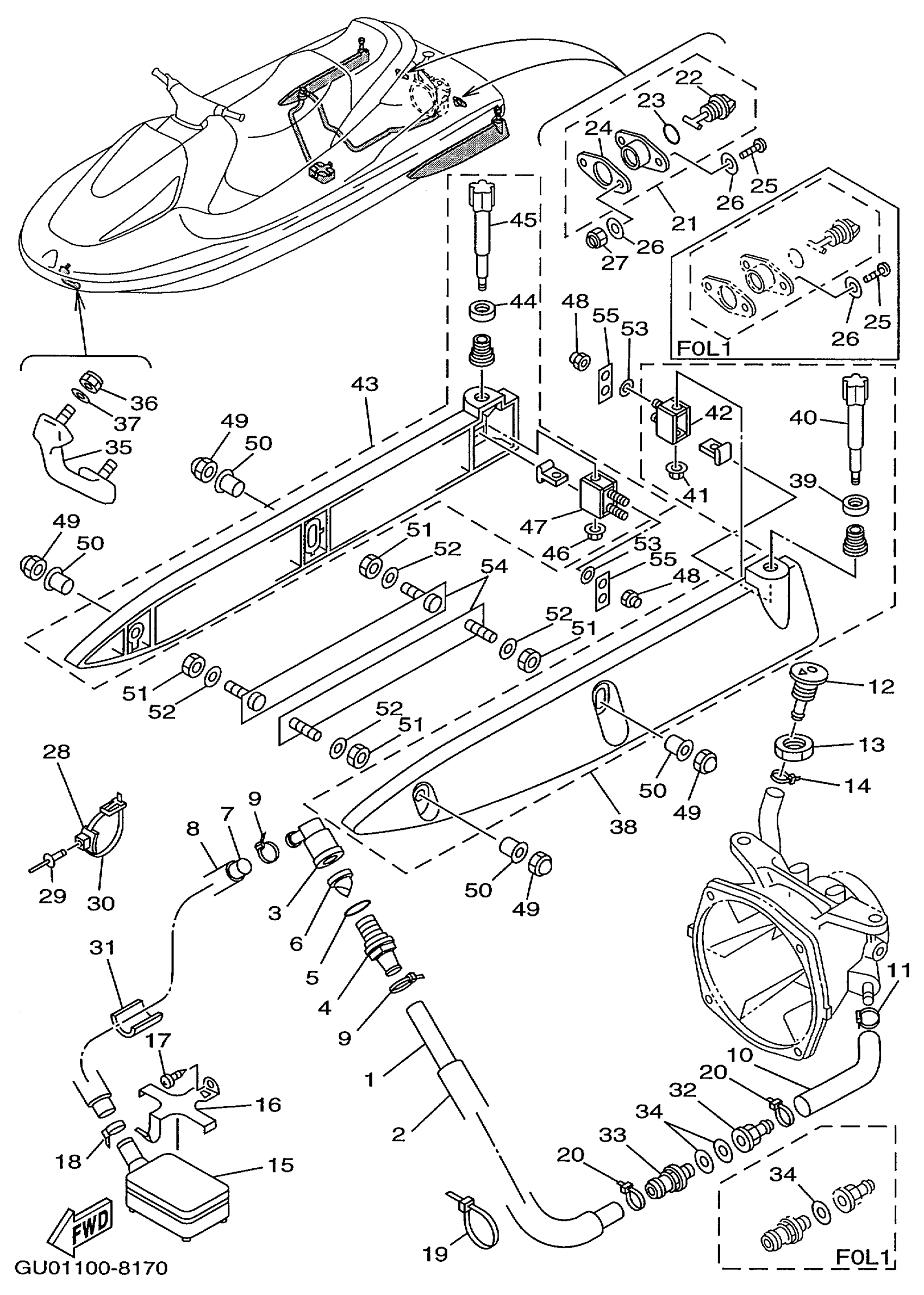 Yamaha GP800W (WAVE RUNNER GP800W) GU01 1998 HULL DECK Diagram
