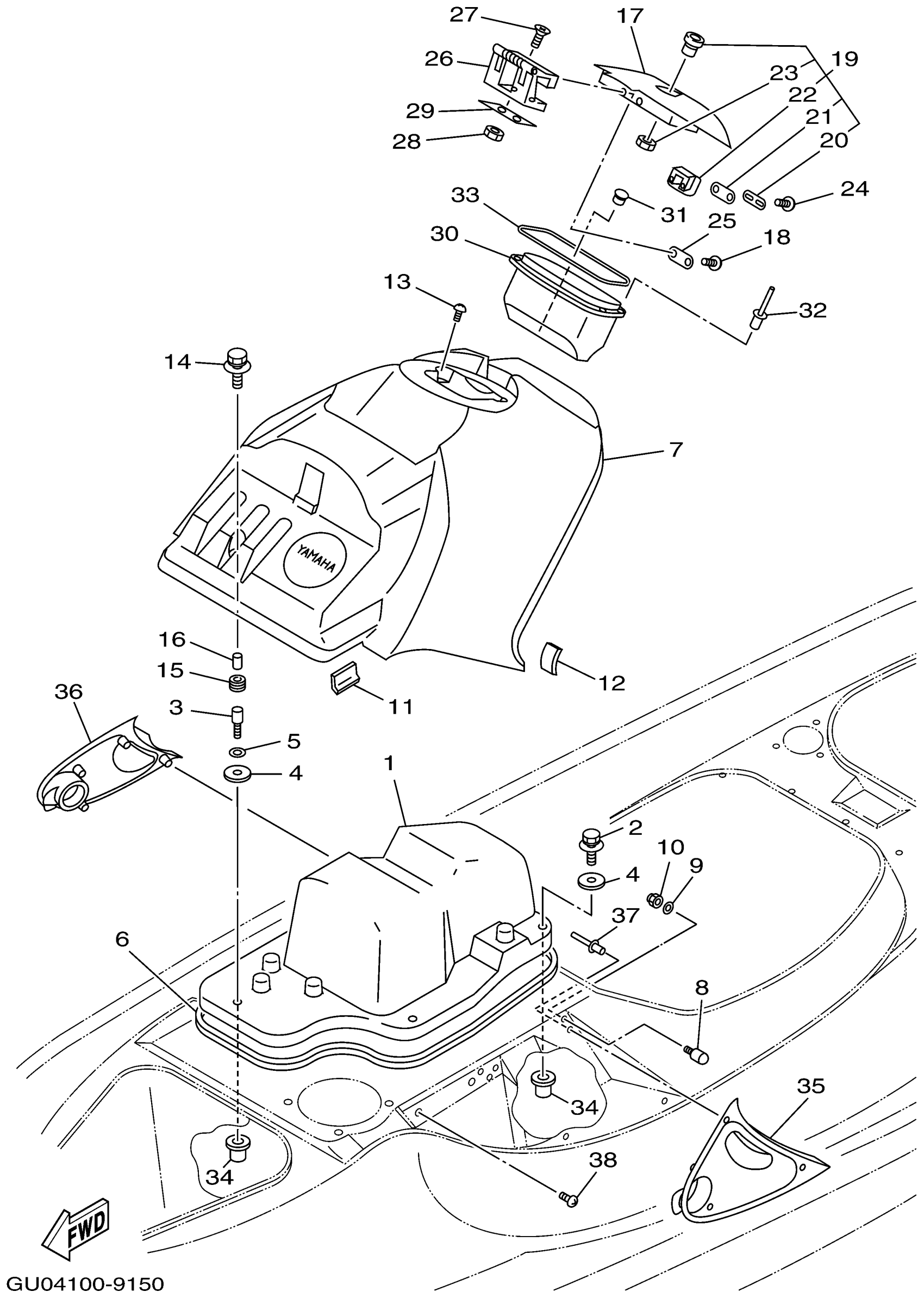 Yamaha GP800X (WAVE RUNNER GP800) GU04 1999 ENGINE HATCH 1 Diagram