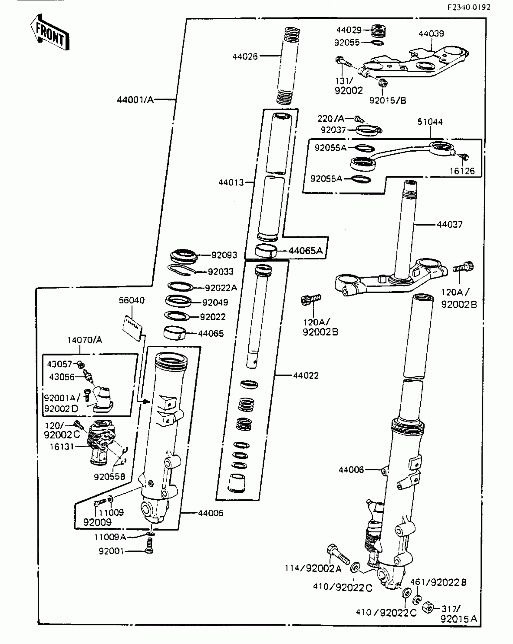 Kawasaki GPz 750 FRONT FORK Diagram