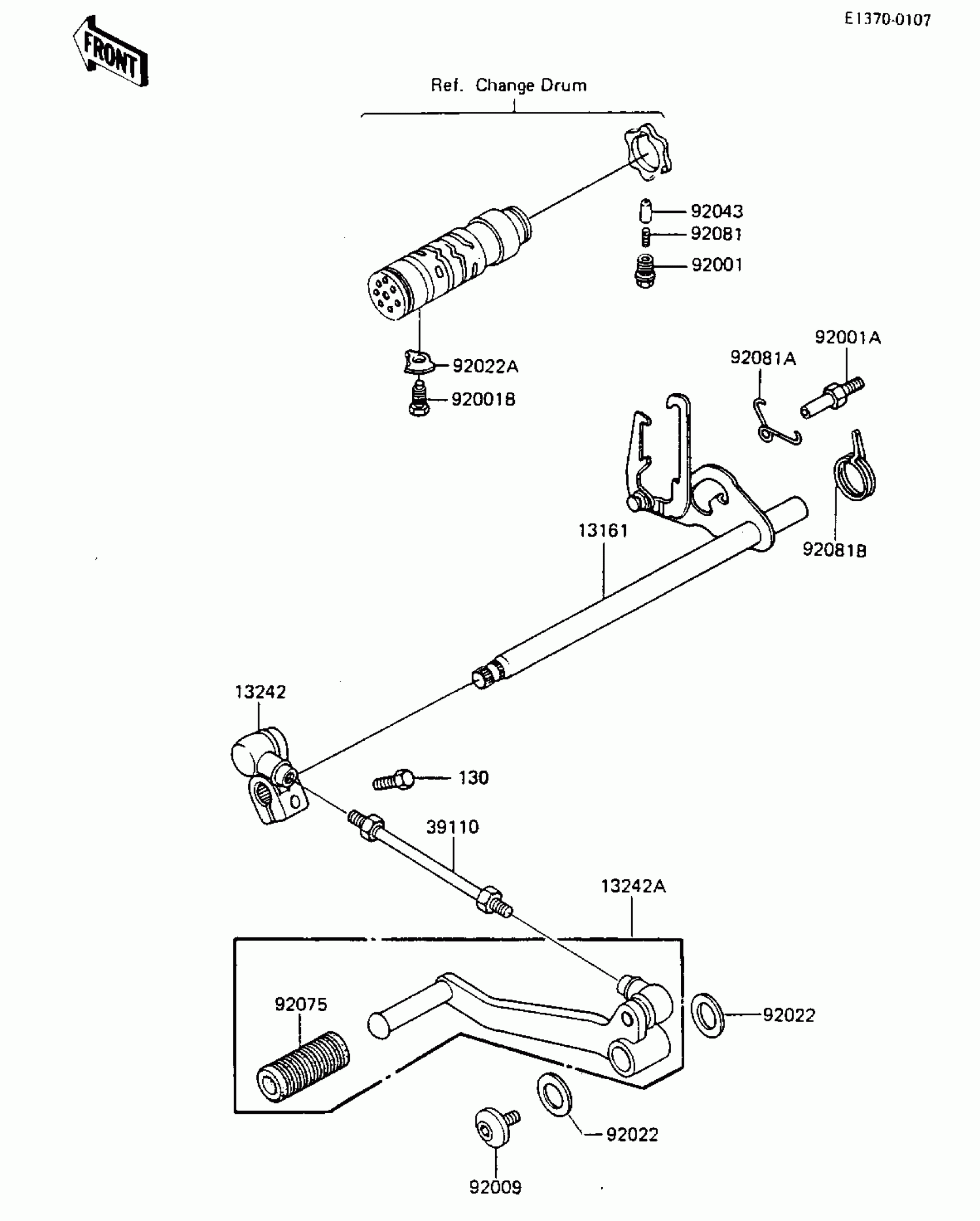 Kawasaki GPz 750 GEAR CHANGE MECHANISM Diagram