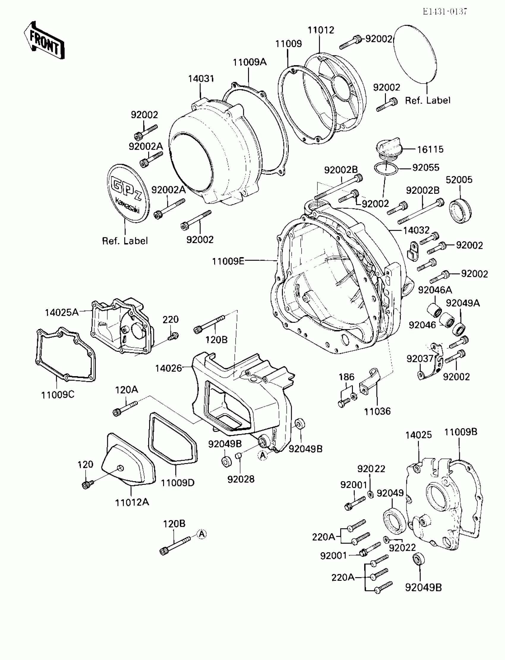 Kawasaki GPz 750 Turbo ENGINE COVERS Diagram