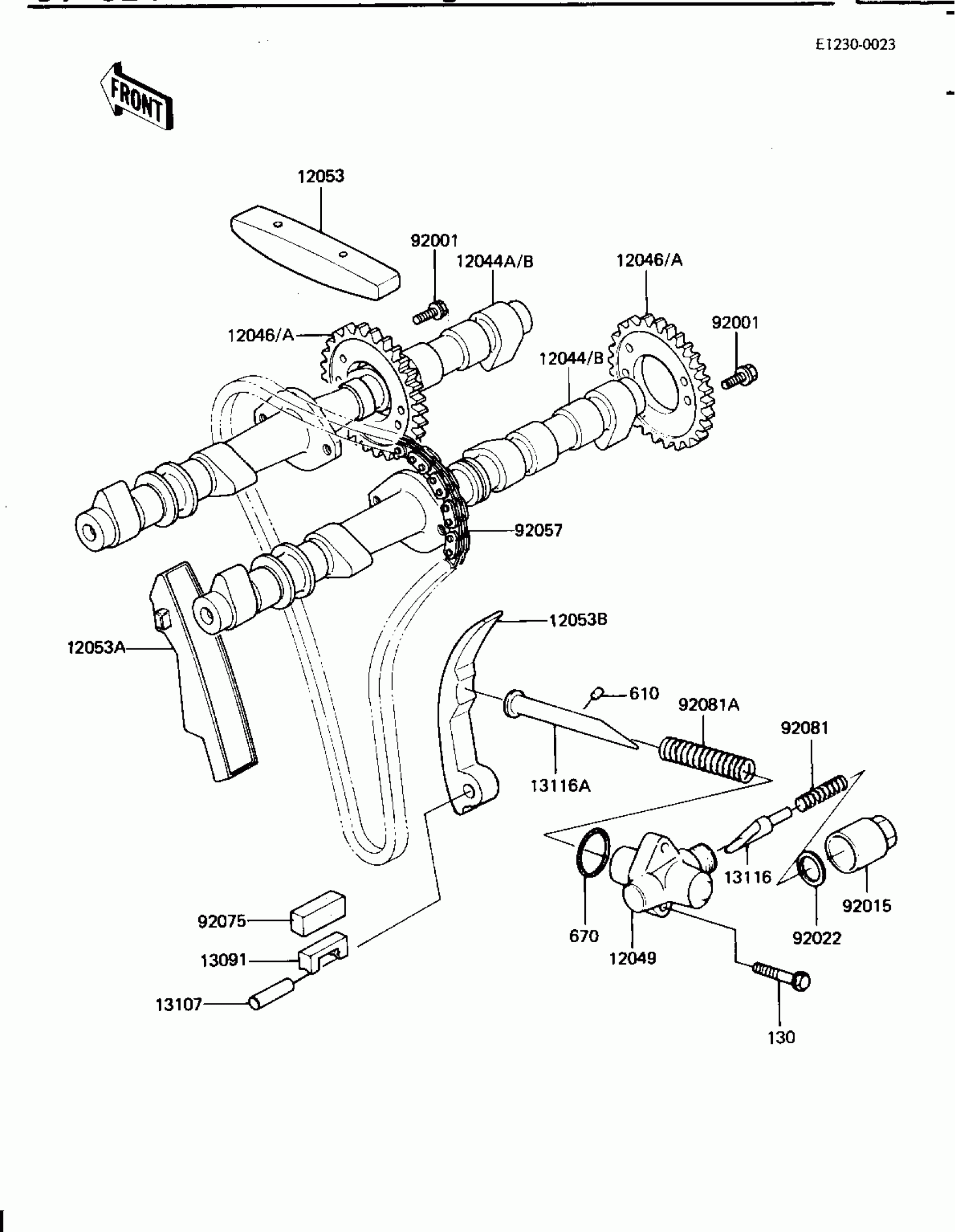 Kawasaki GPz CAMSHAFTS/CHAIN/TENSIONER Diagram