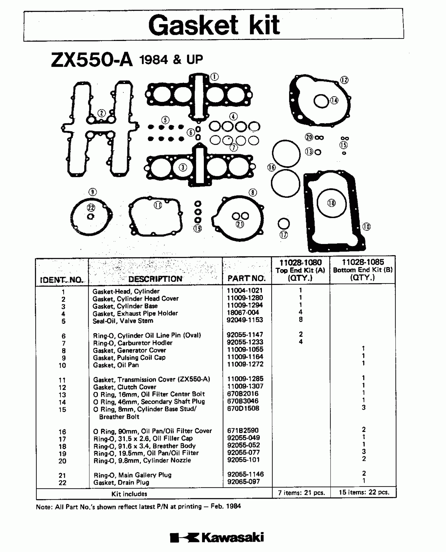 Kawasaki GPz GASKET KIT Diagram