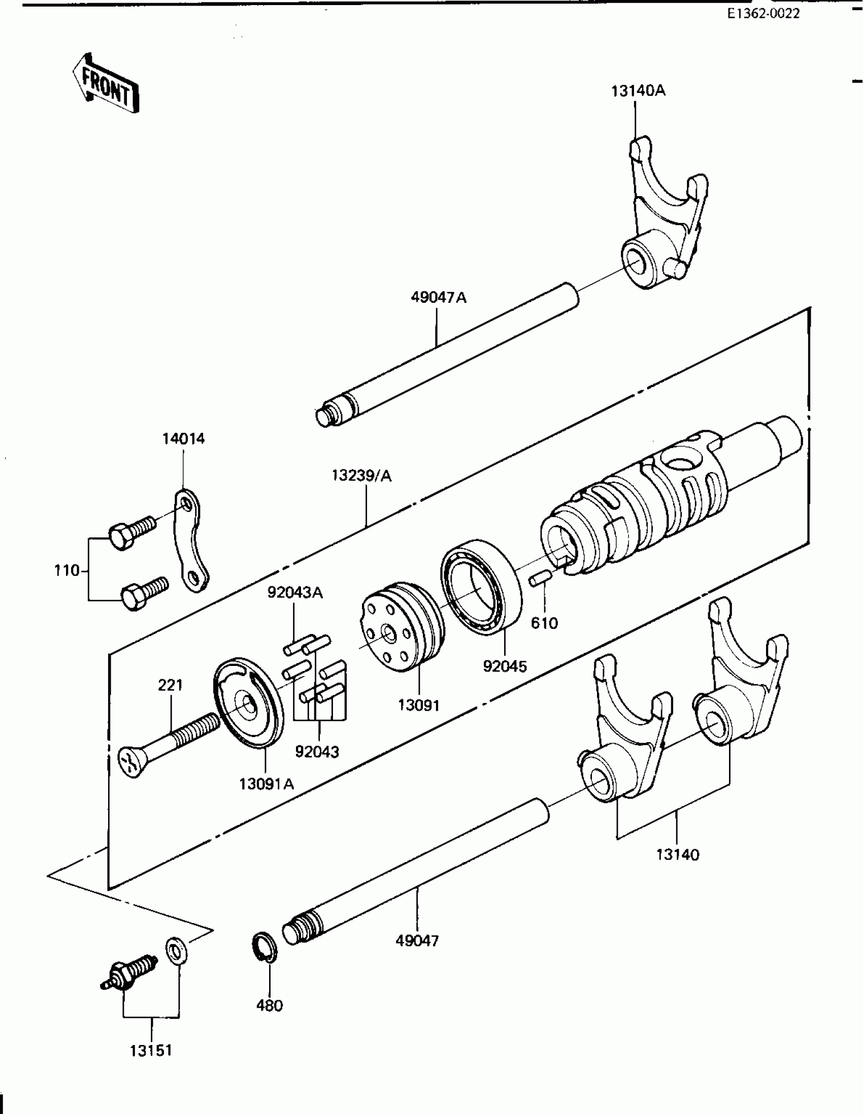 Kawasaki GPz GEAR CHANGE DRUM & FORKS Diagram