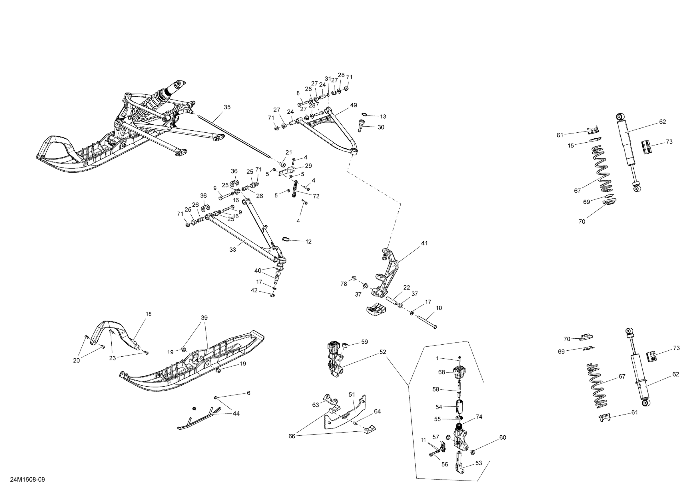 Ski-Doo GRAND TOURING - 2-STROKE, 2016 Front Suspension And Ski Diagram