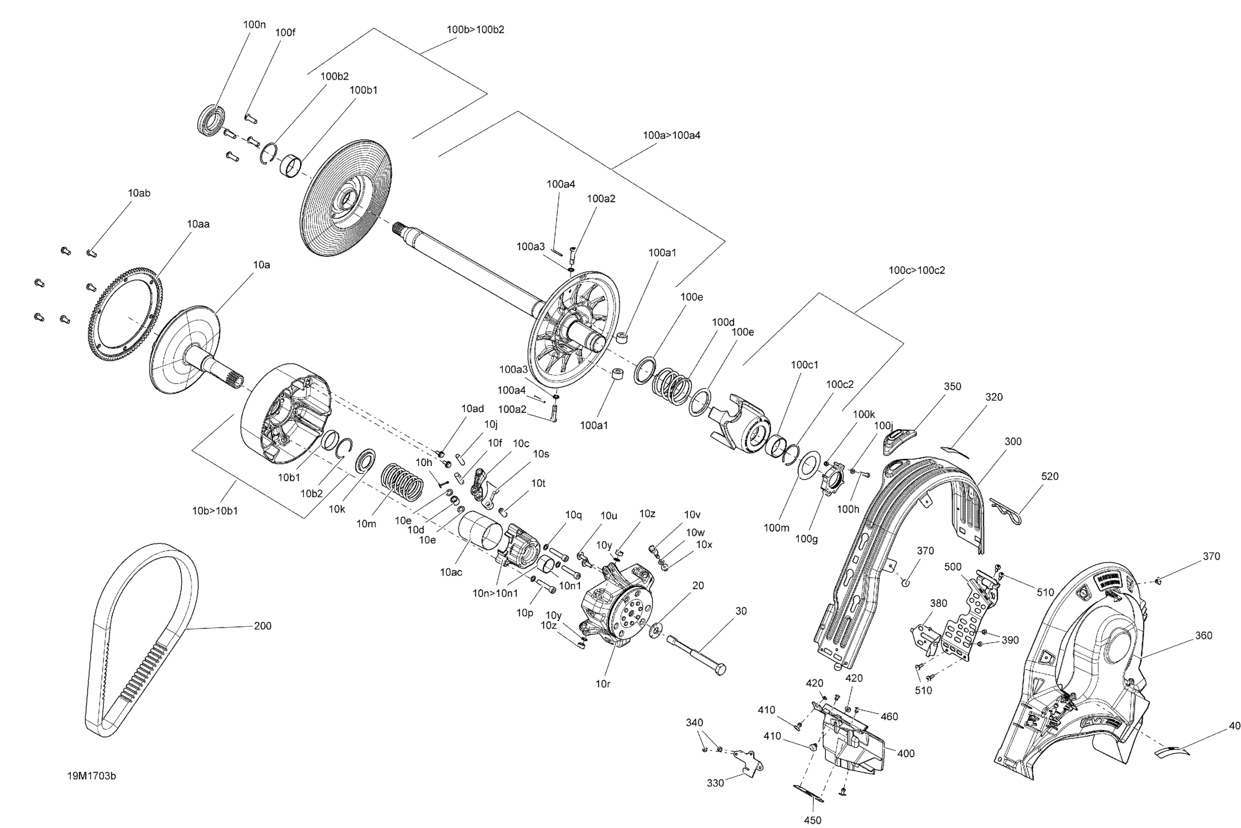 Ski-Doo GRAND TOURING - 2-STROKE, 2017 05- Pulley System - 600HO E-TEC Diagram