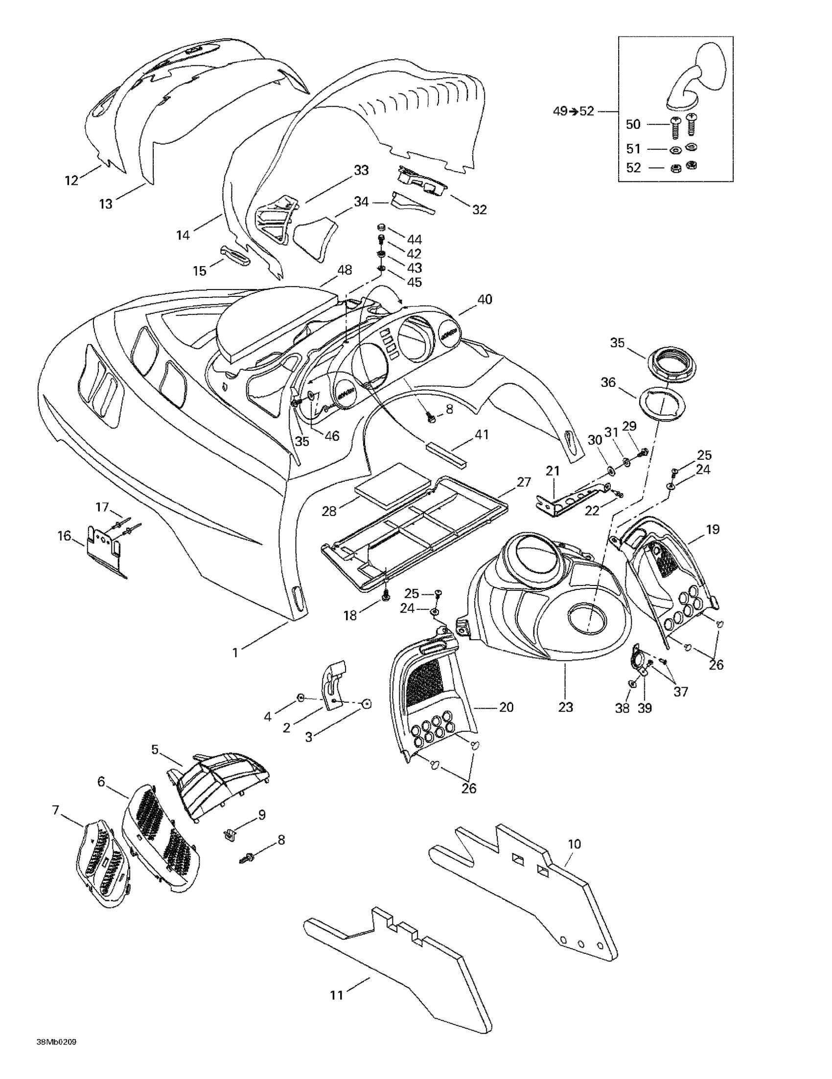 Ski-Doo Grand Touring 380 F/500 F, 2002 Cab, Console Diagram