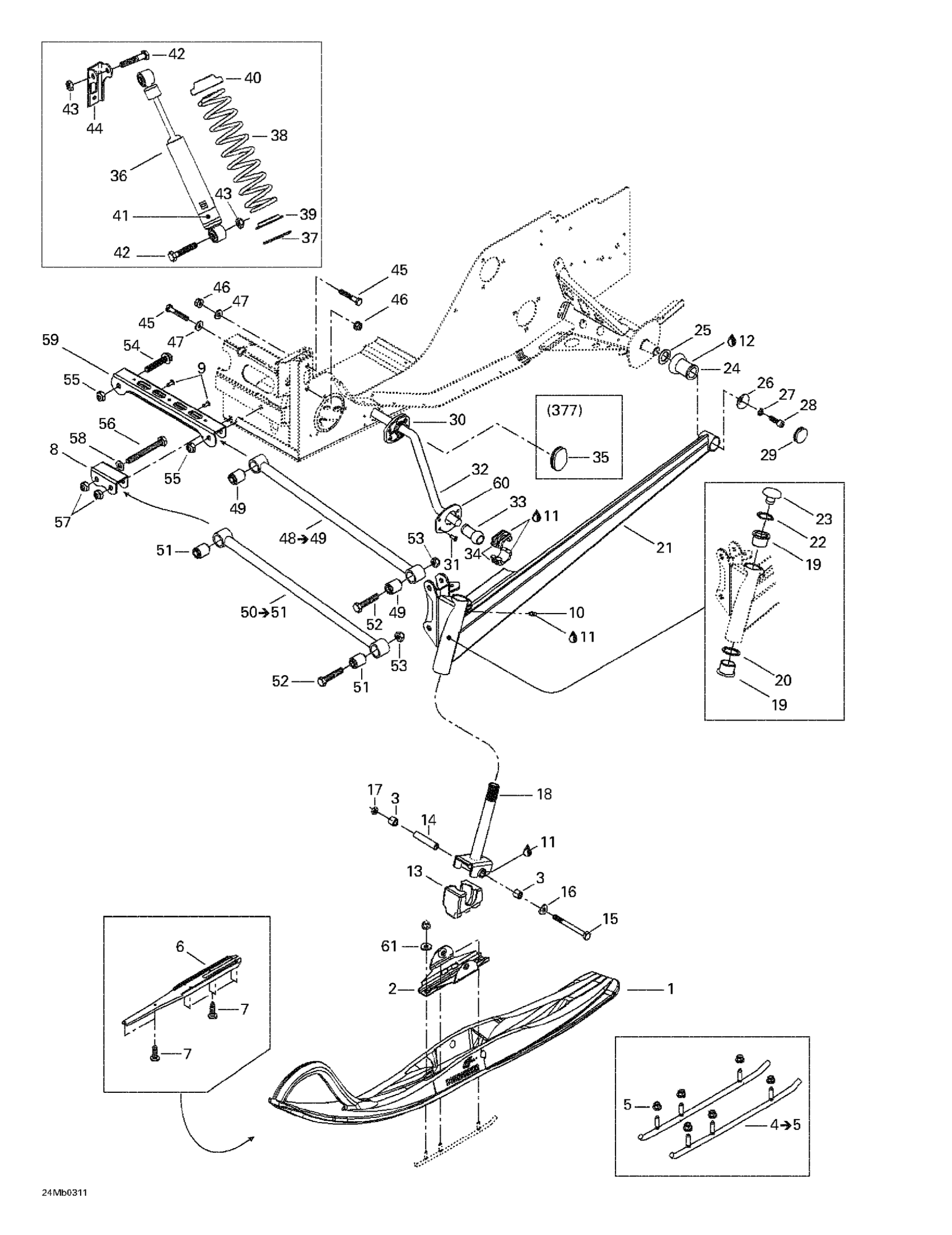 Ski-Doo Grand Touring 380 F/550 F, 2003 Front Suspension And Ski Diagram