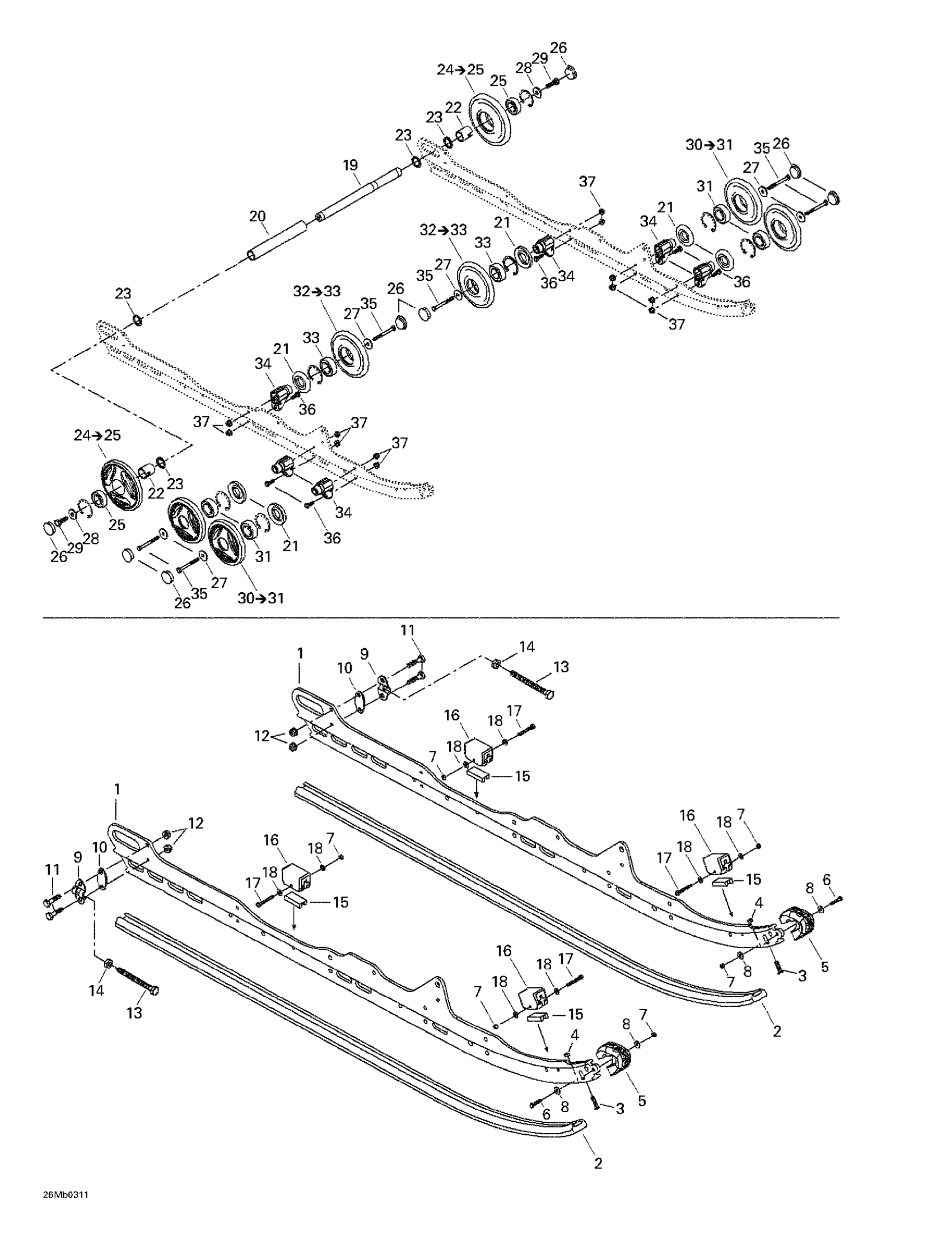 Ski-Doo Grand Touring 380 F/550 F, 2003 Rear Suspension Diagram