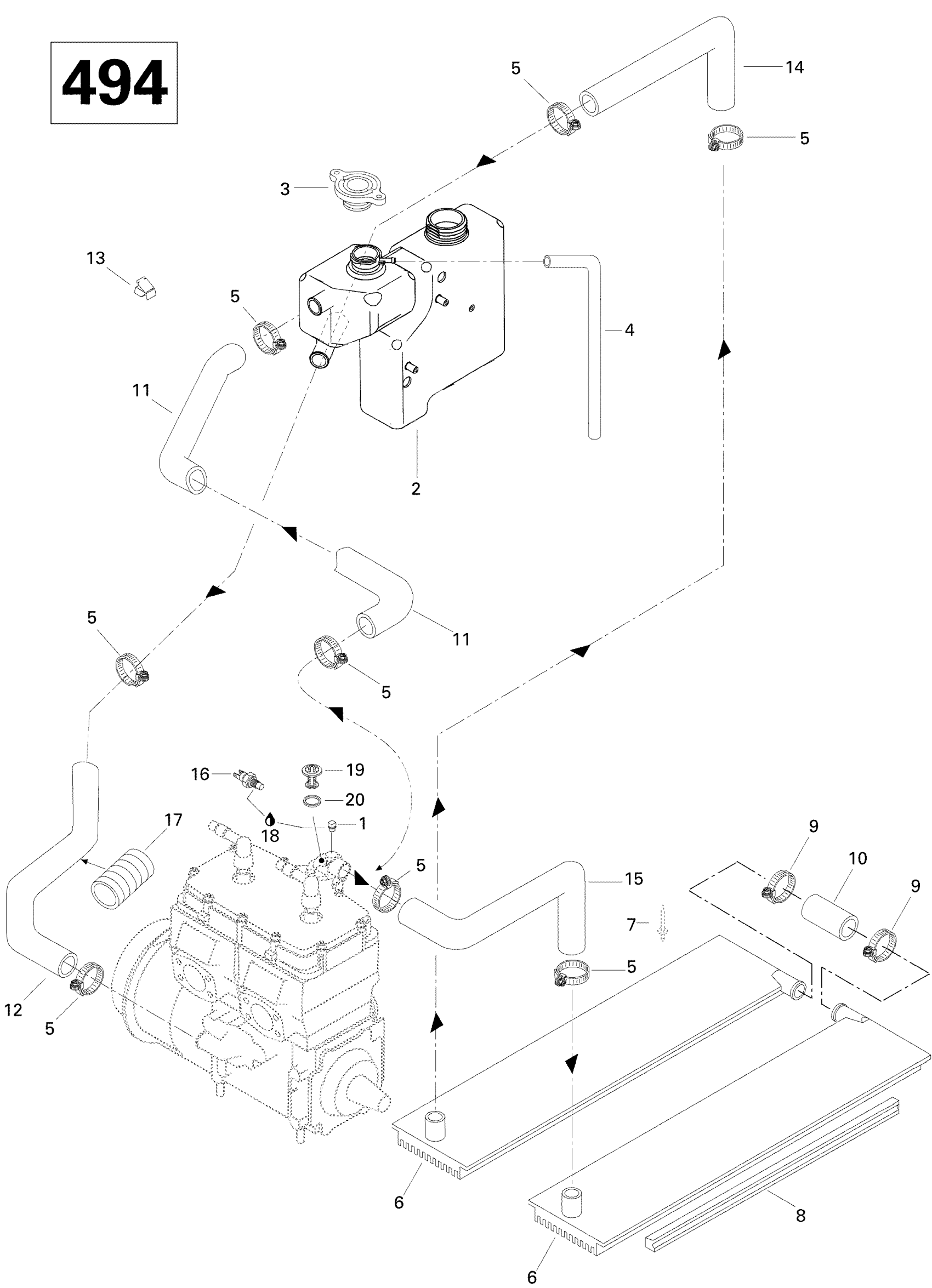 Ski-Doo Grand Touring 500, 1996 Cooling System (500) Diagram