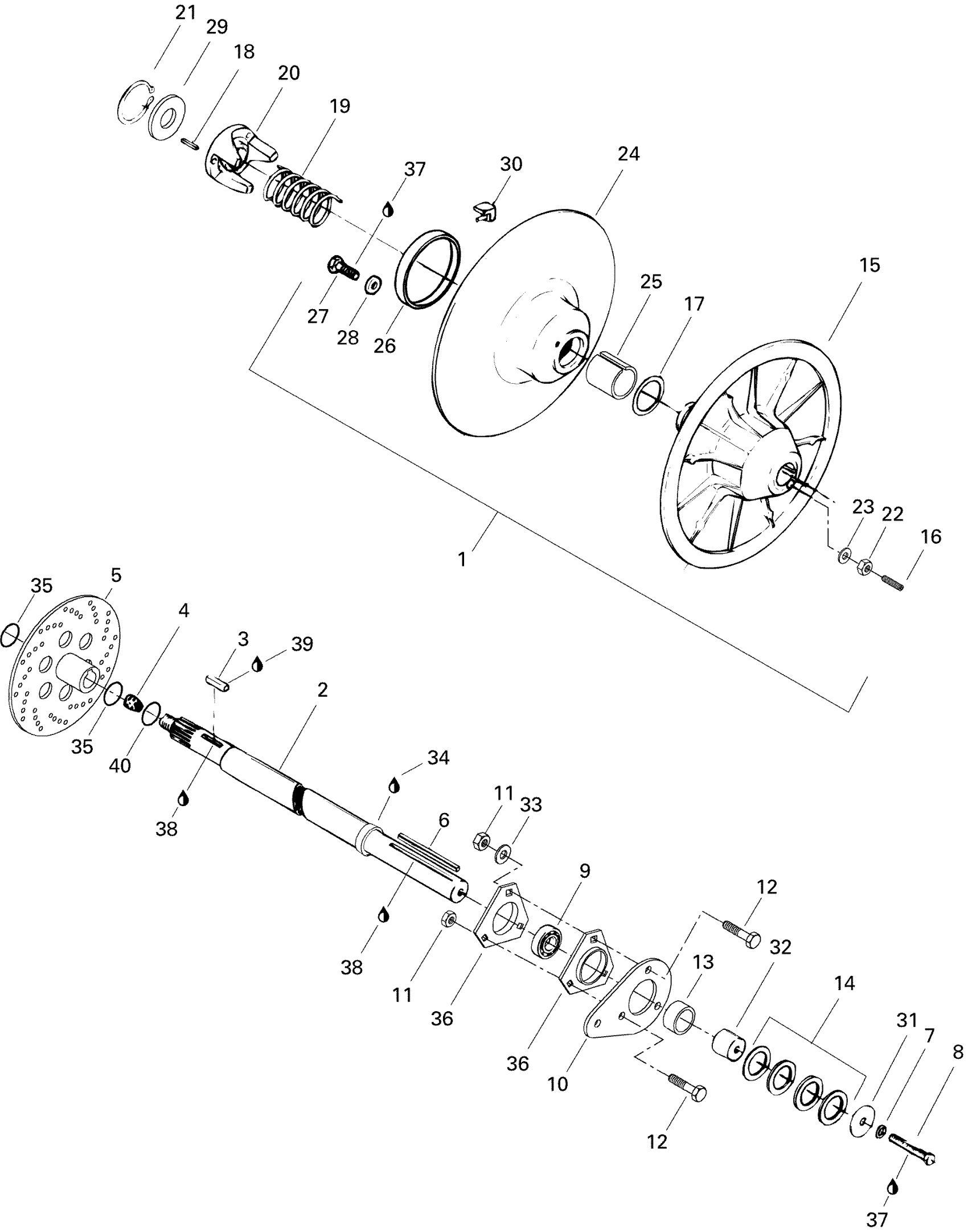 Ski-Doo Grand Touring 500, 1996 Driven Pulley 500 Diagram