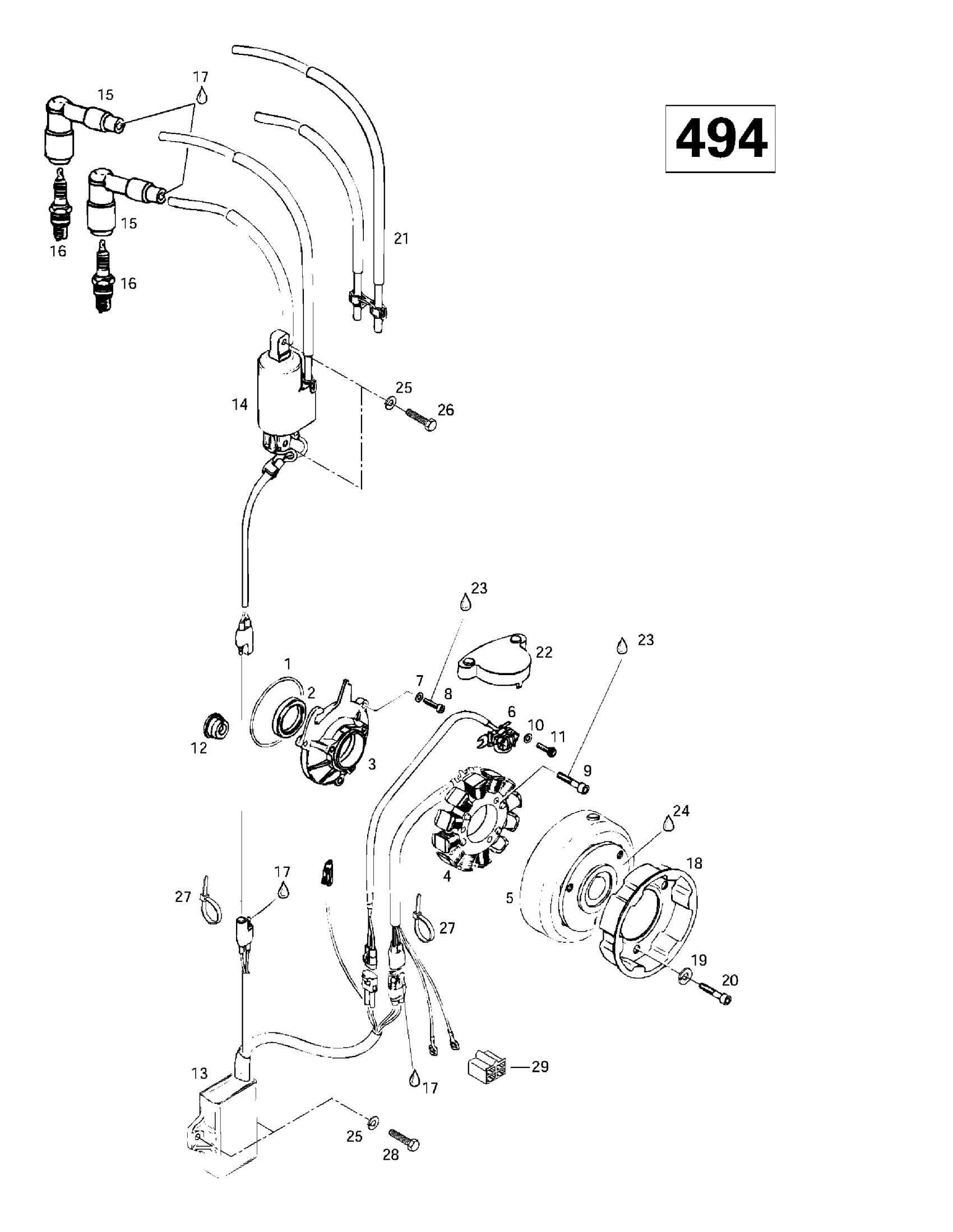 Ski-Doo Grand Touring 500/583, 1997 Magneto 12V 220W (494) Diagram