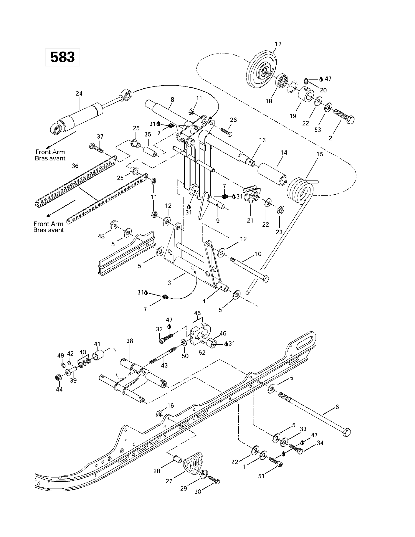 Ski-Doo Grand Touring 500/583, 1997 Rear Arm, Rear Suspension 136” #2 Diagram