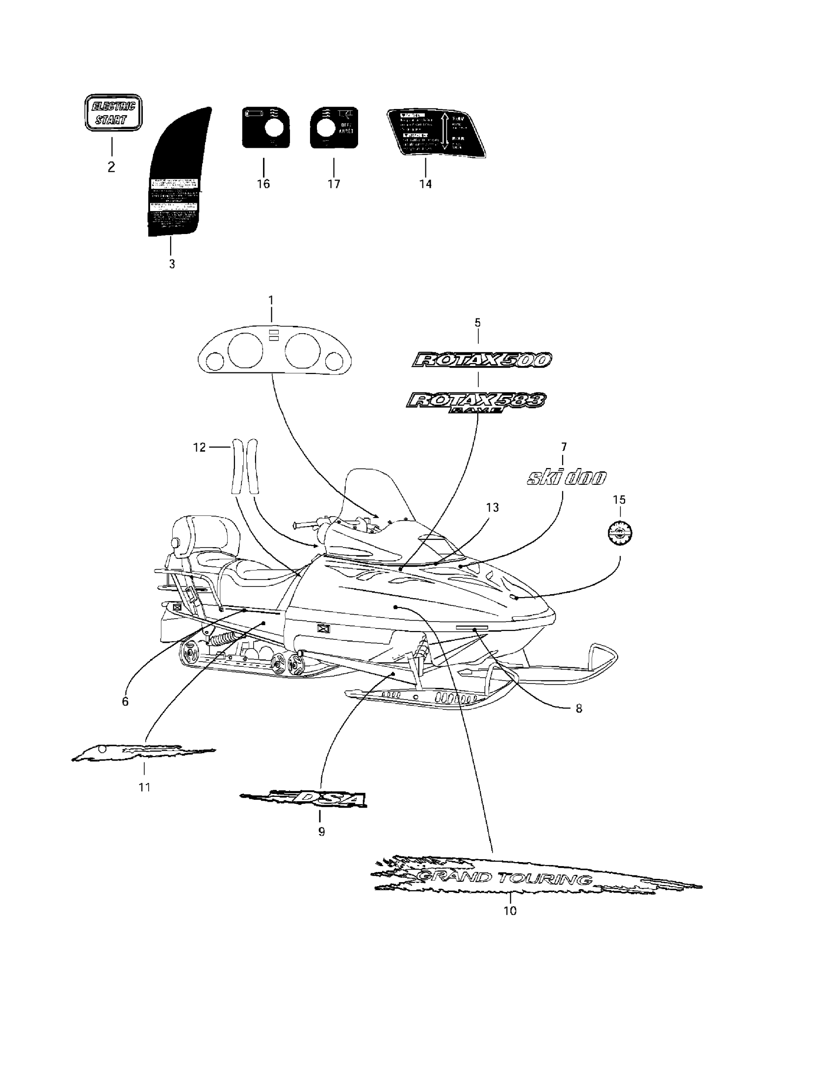 Ski-Doo Grand Touring 500/583, 1997 Decals Diagram