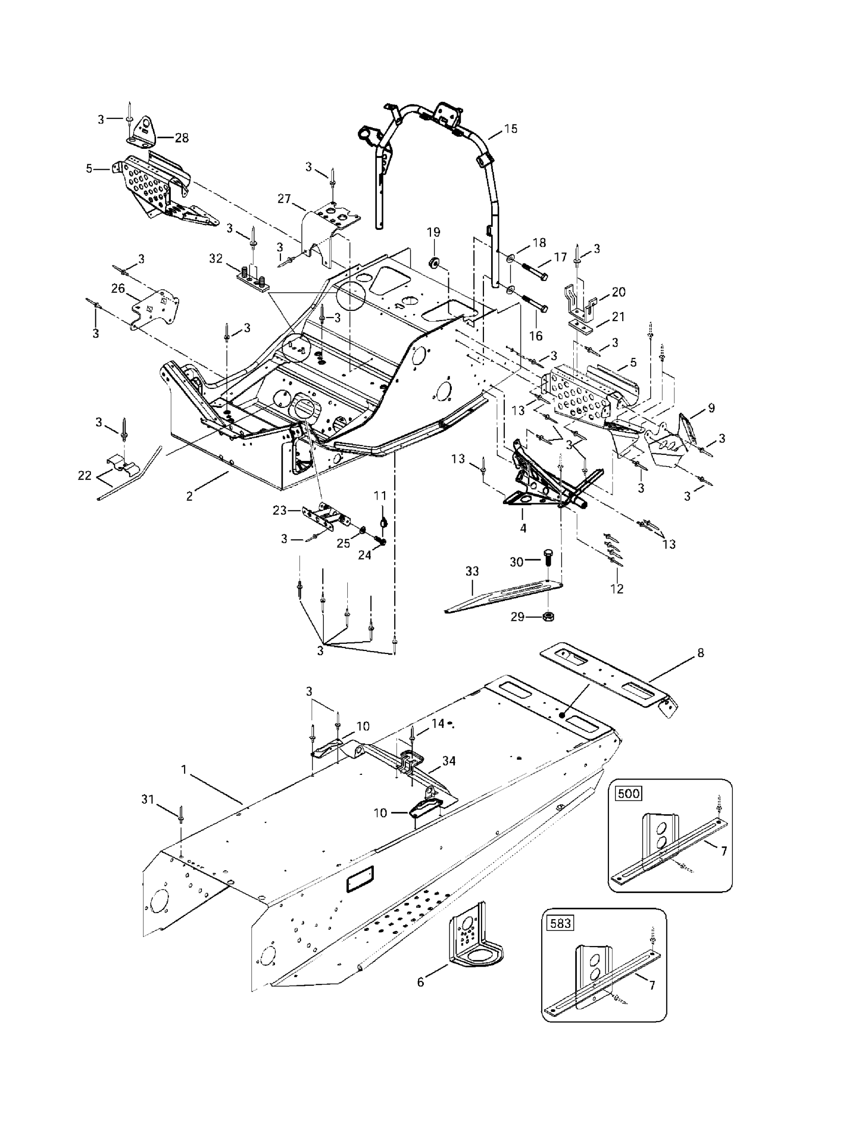 Ski-Doo Grand Touring 500/583, 1997 Frame And Accessories Diagram