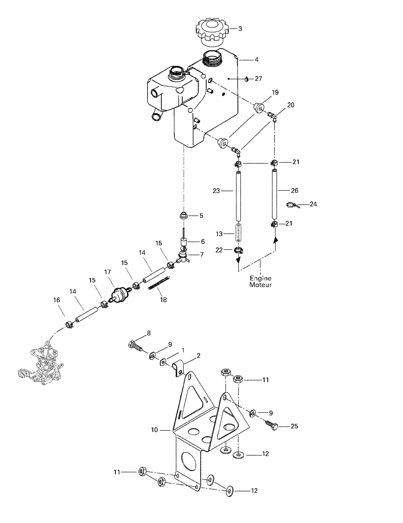 Ski-Doo Grand Touring 500/583, 1998 Oil Tank And Support Diagram