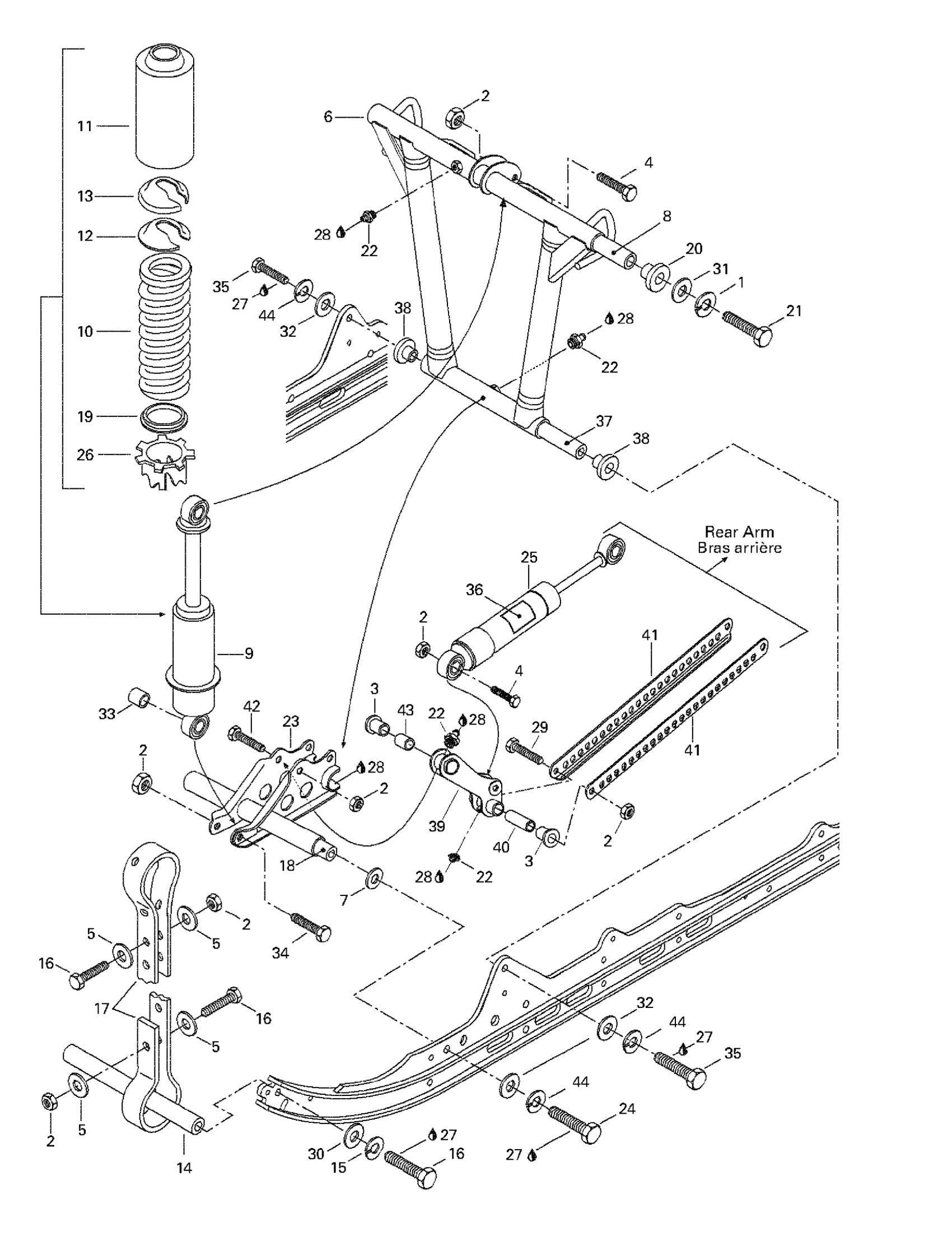 Ski-Doo Grand Touring 500/583, 1998 Front Arm, Rear Suspension Diagram