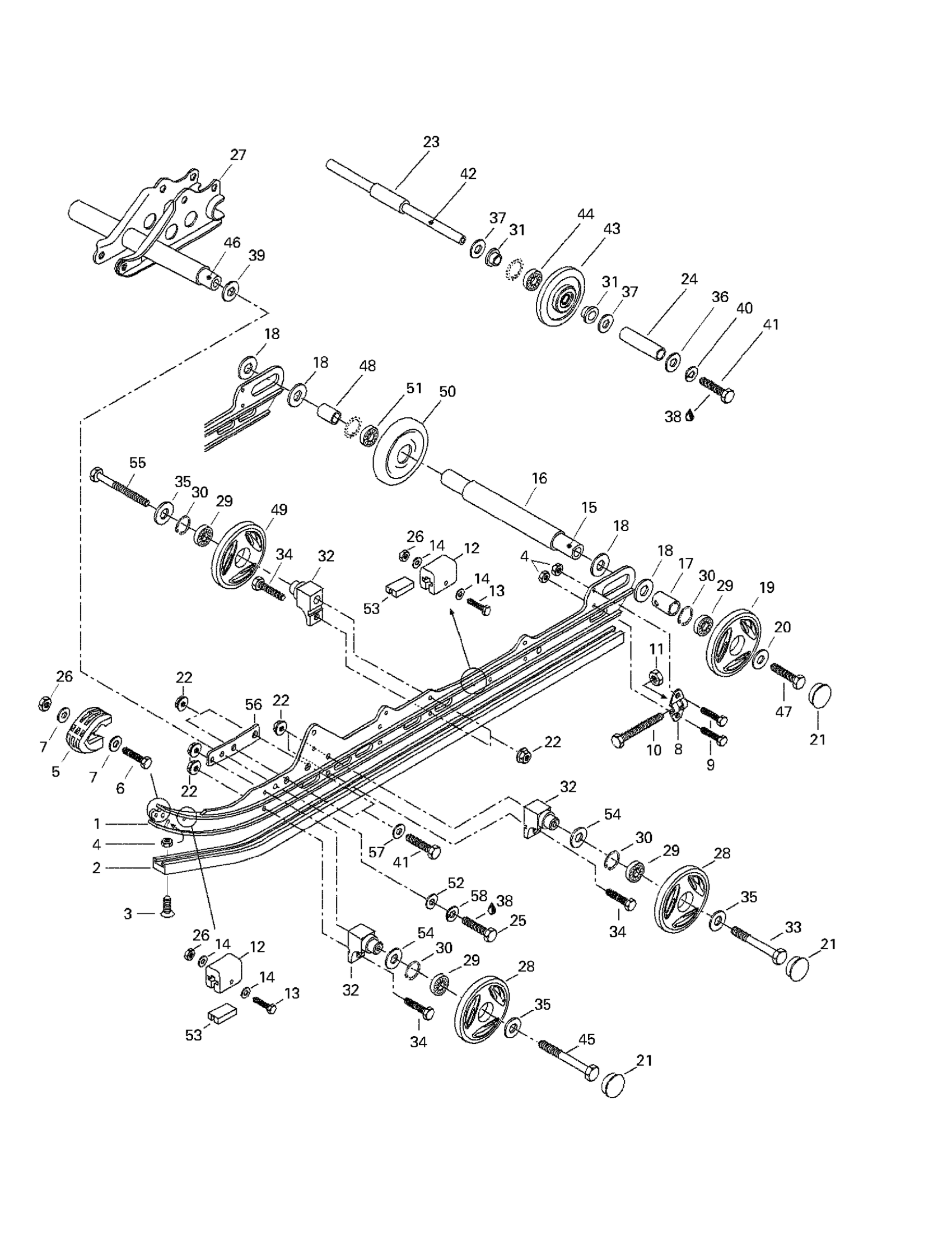 Ski-Doo Grand Touring 500/583, 1998 Rear Suspension Diagram