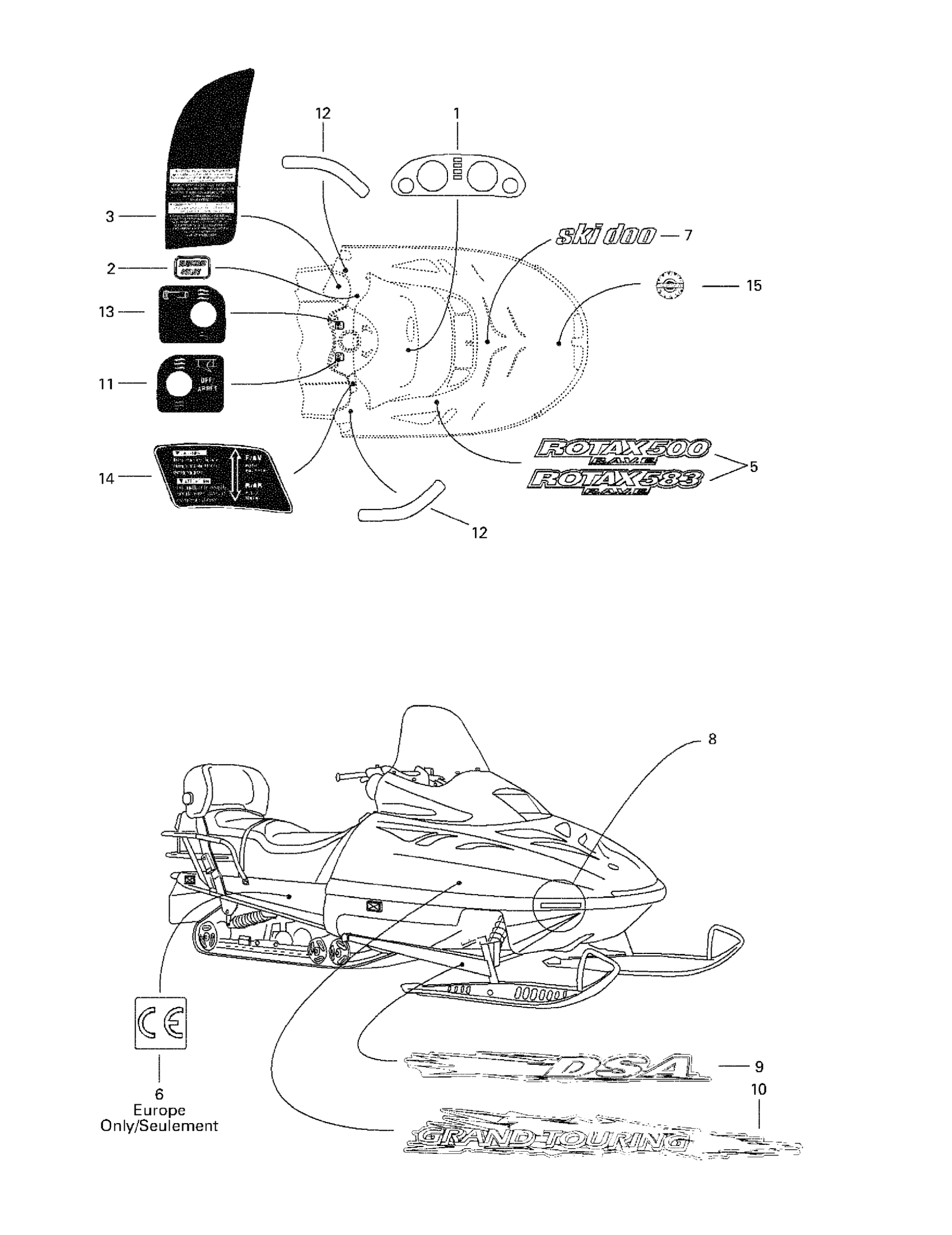 Ski-Doo Grand Touring 500/583, 1998 Decals Diagram