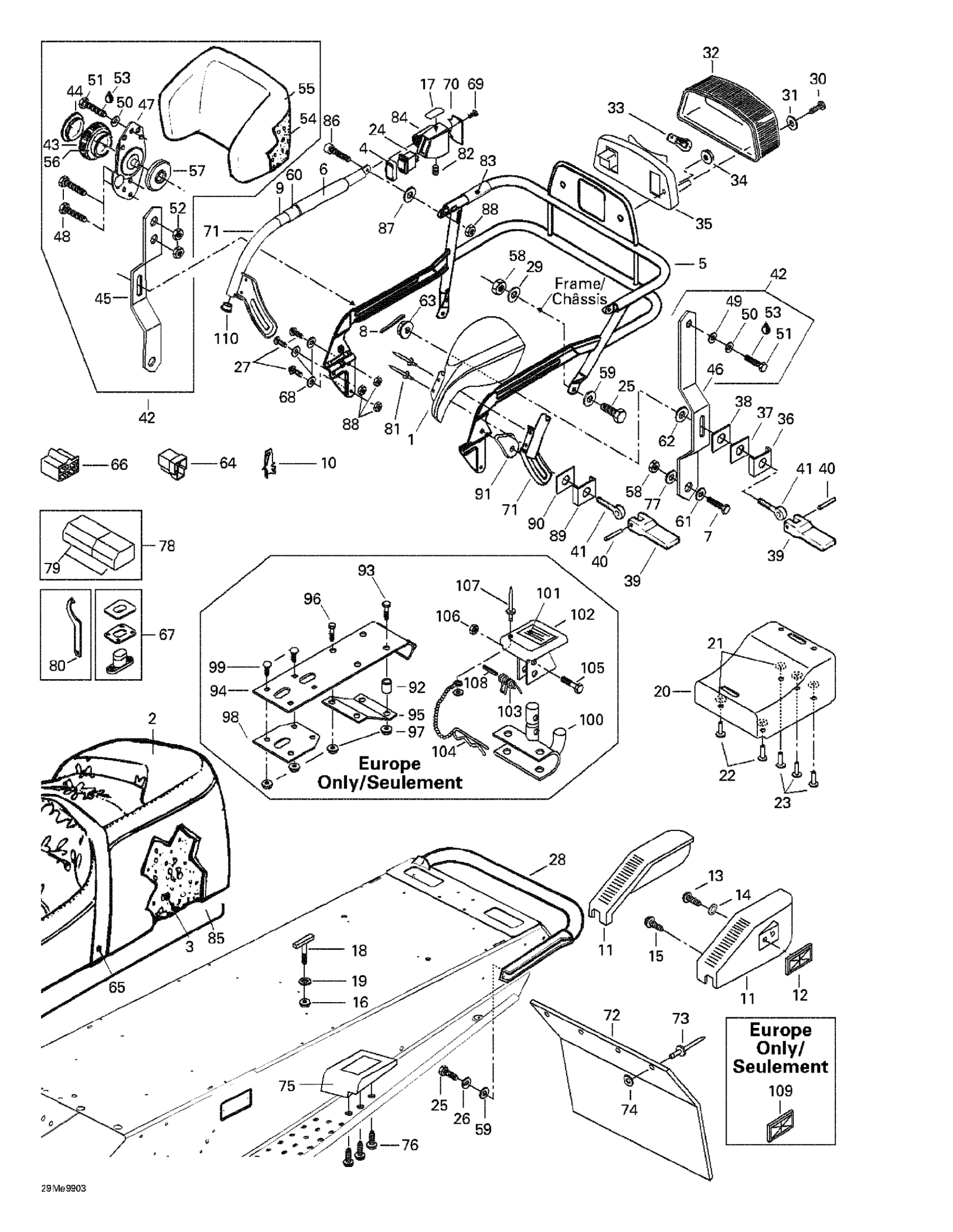 Ski-Doo Grand Touring 500/583, 1999 Seat And Accessories Diagram
