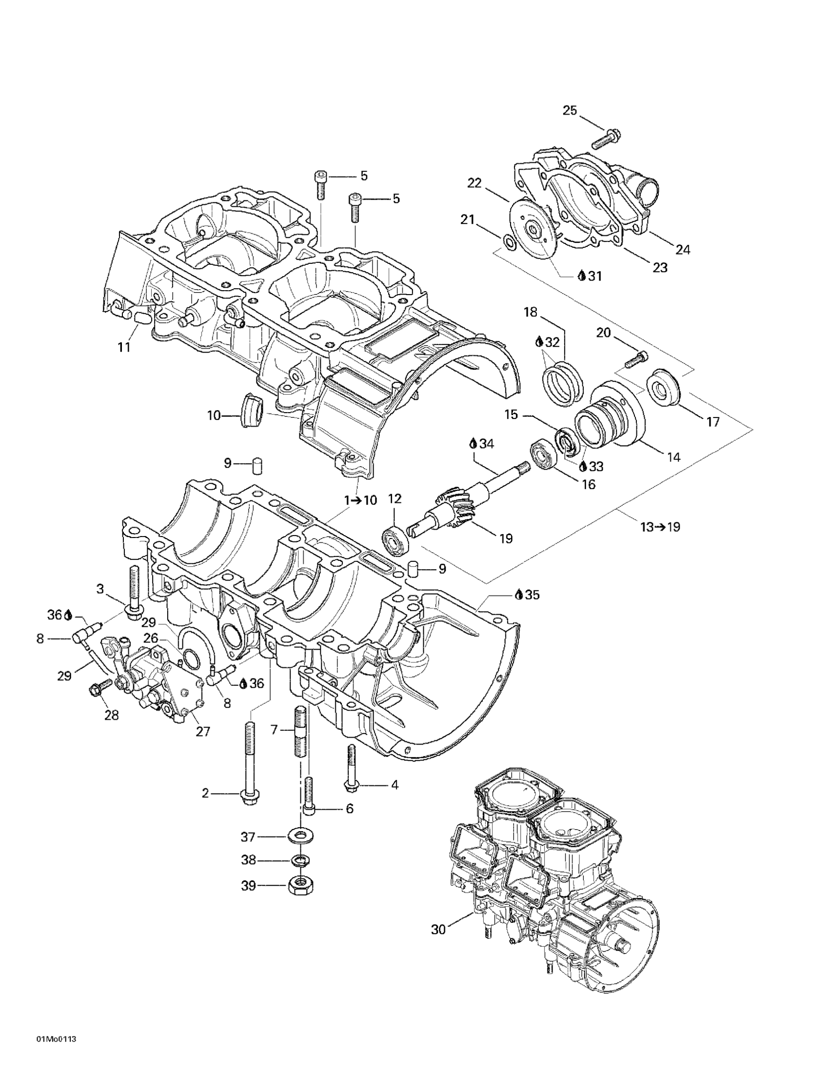 CRANKCASE ASS'Y (600) - Call your local BRP dealership | Includes 1 - 11. Skandic 600.