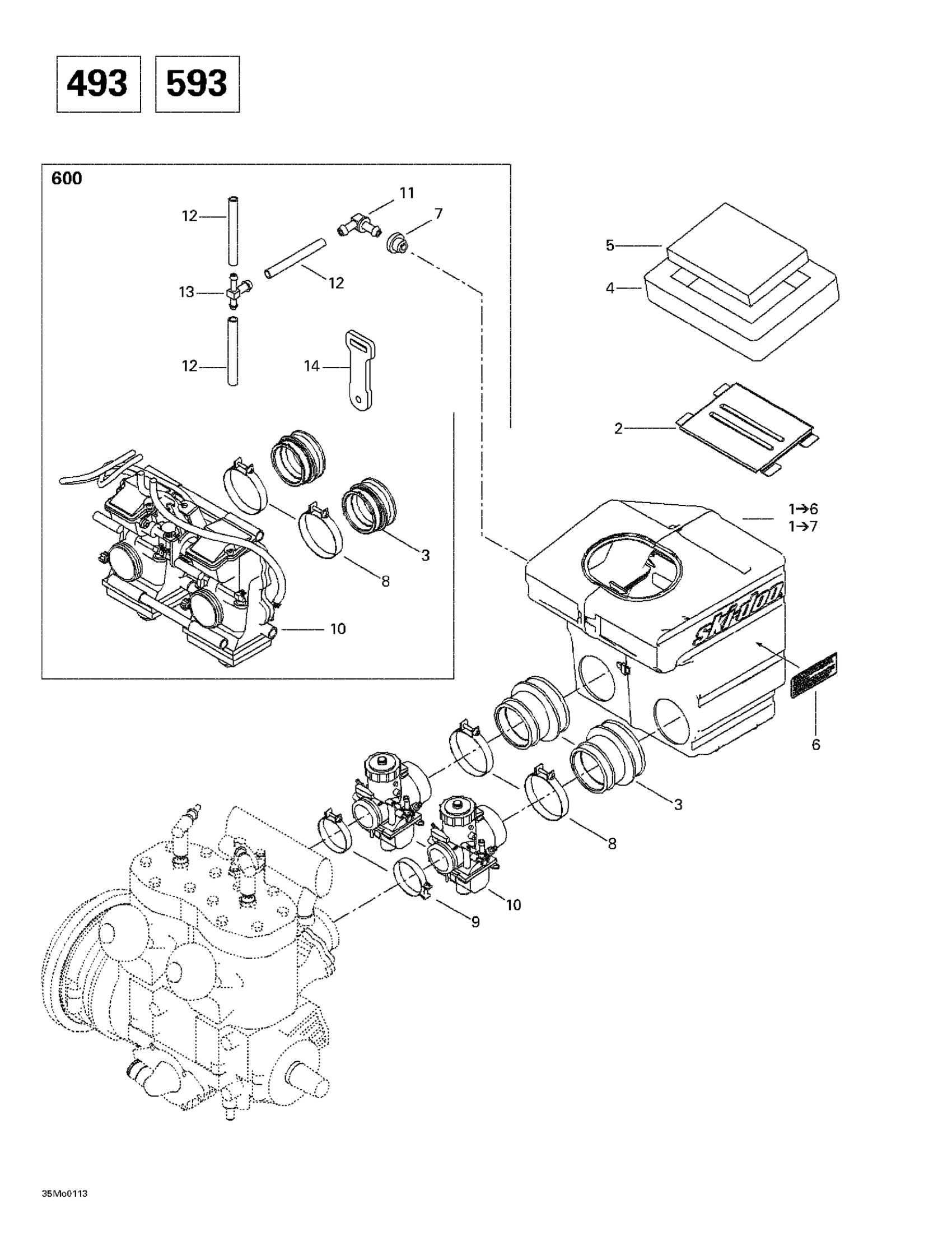 Ski-Doo Grand Touring 500/600/700, 2001 Air Intake System (493, 593) Diagram