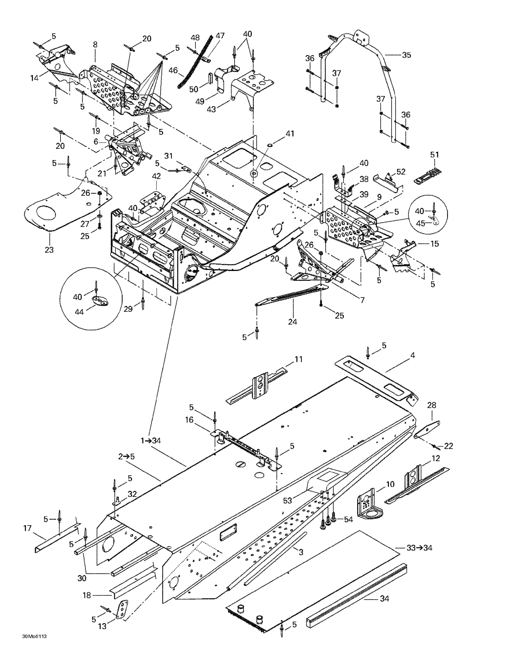 Ski-Doo Grand Touring 500/600/700, 2001 Frame And Accessories Diagram