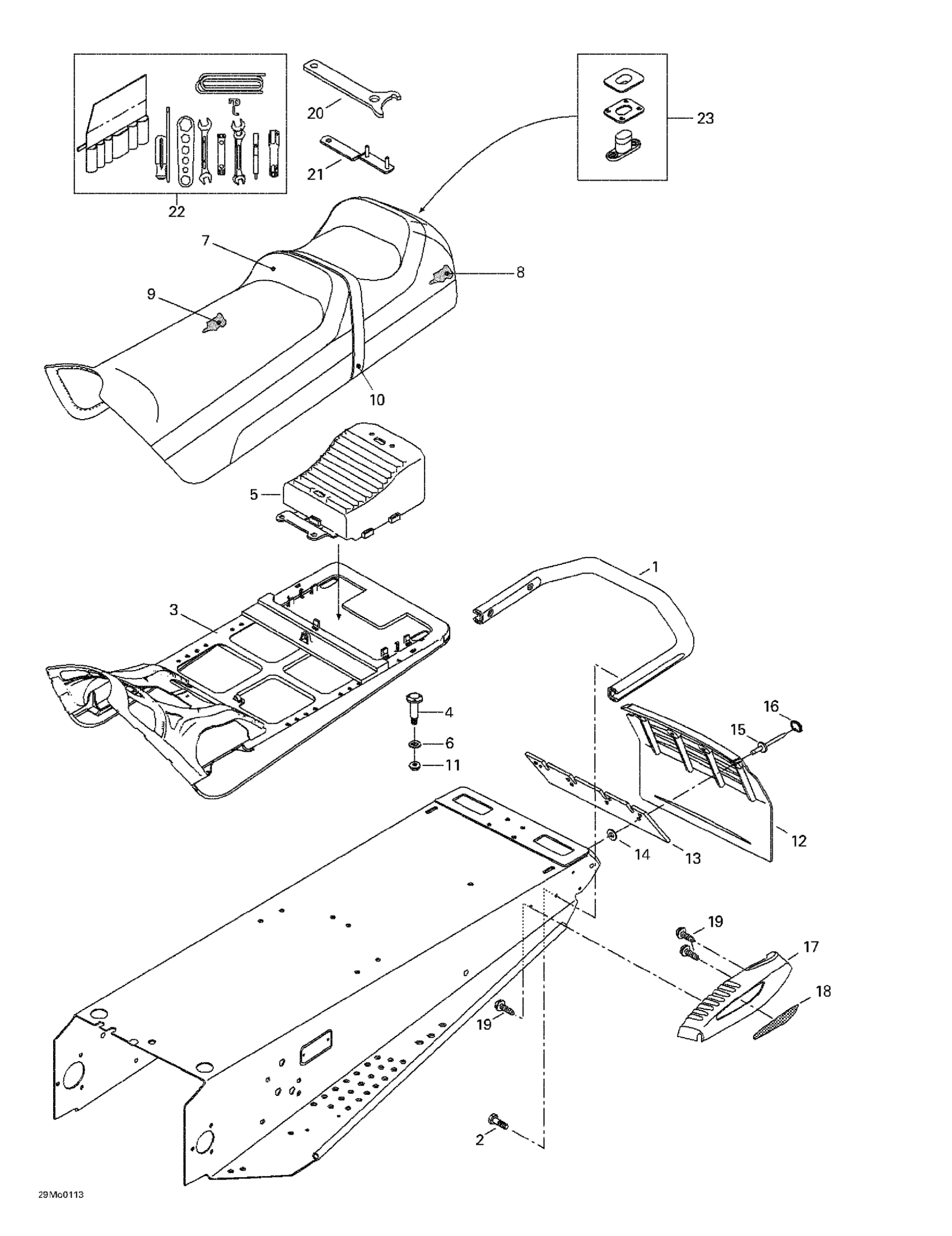 Ski-Doo Grand Touring 500/600/700, 2001 Seat And Accessories Diagram