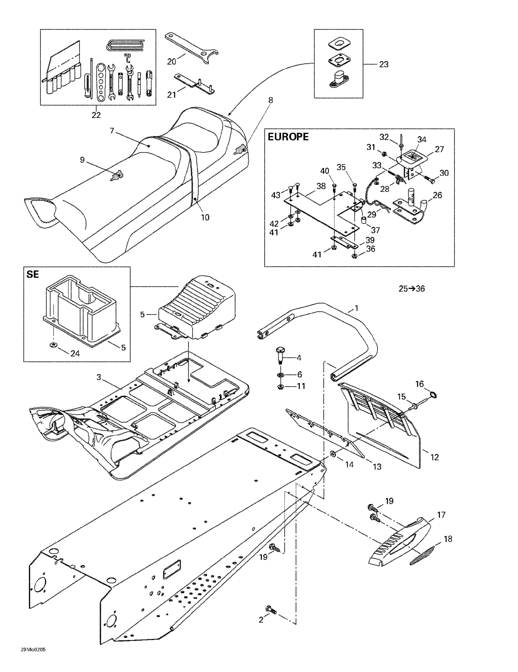 Ski-Doo Grand Touring 500/600/700/800, 2002 Seat, Accessories, Hitch Diagram