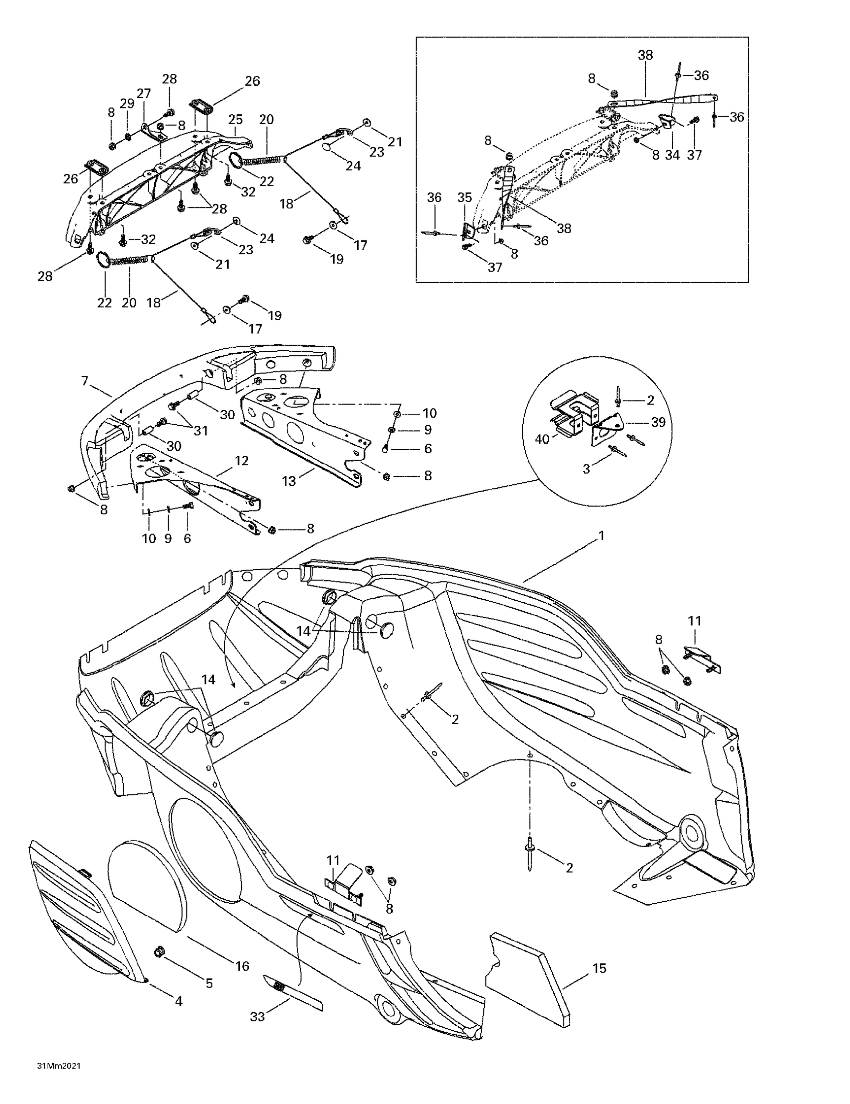 Ski-Doo Grand Touring 600, 2000 Bottom Pan Diagram