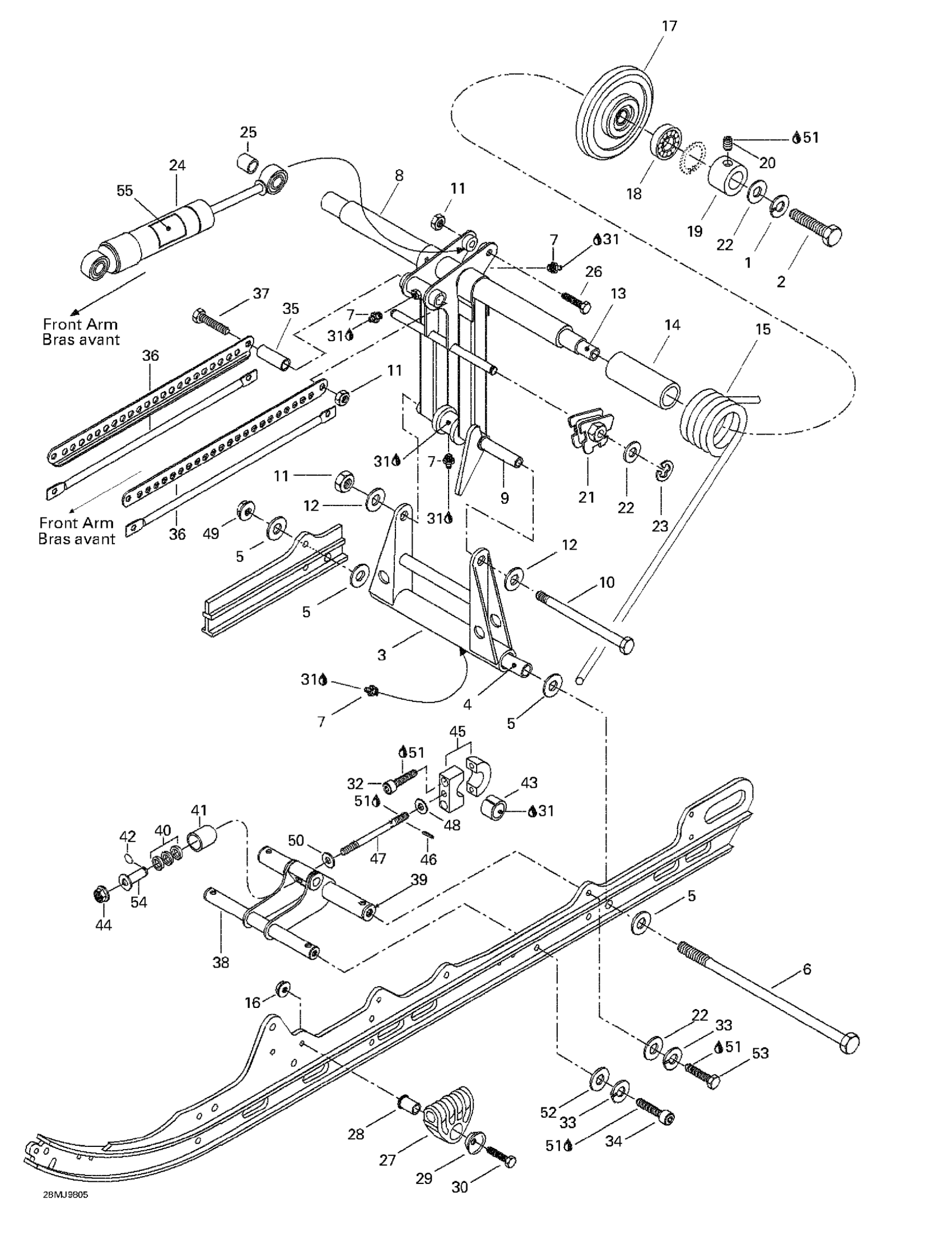 Ski-Doo Grand Touring 700, 1998 Rear Arm, Rear Suspension Diagram