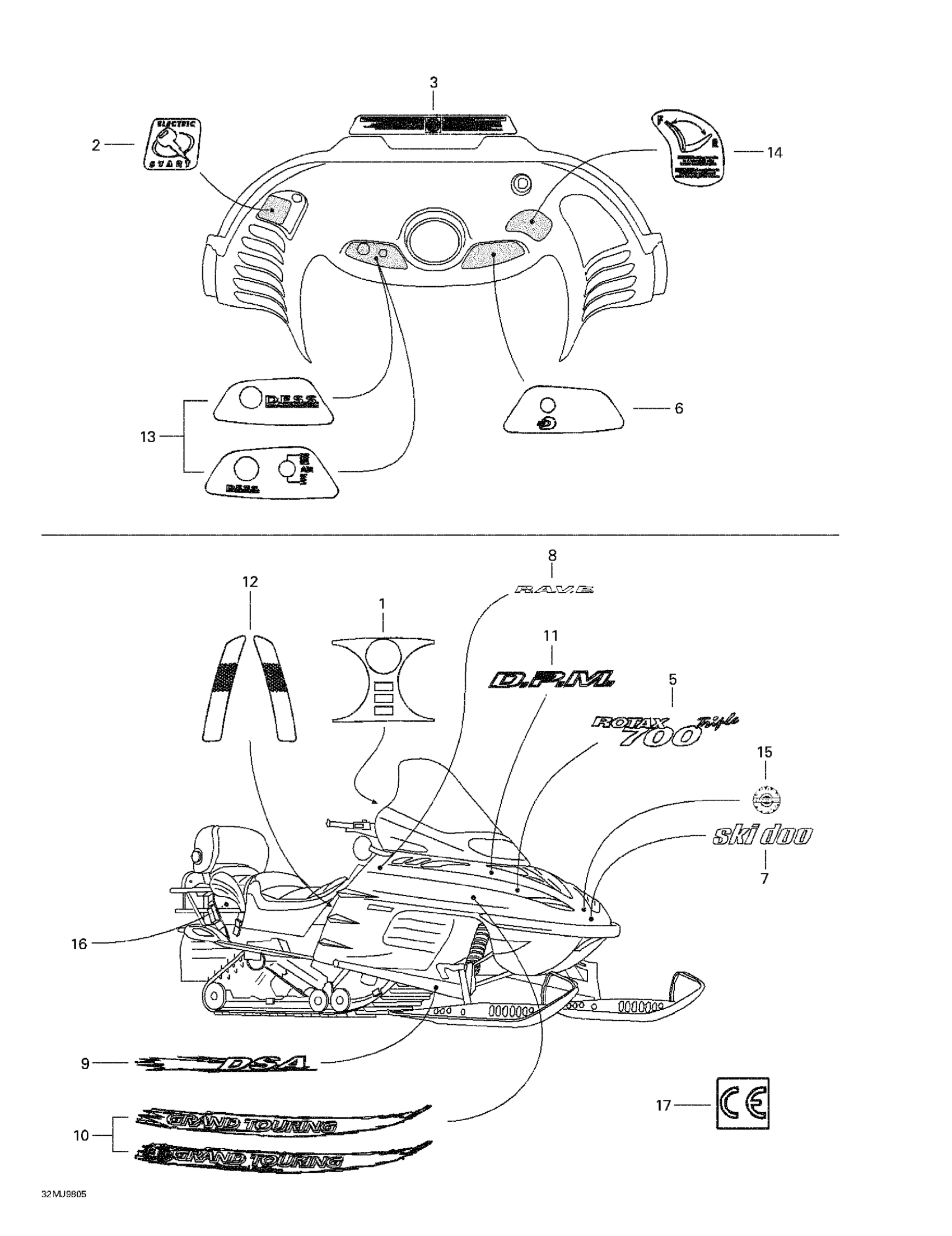Ski-Doo Grand Touring 700, 1998 Decals Diagram