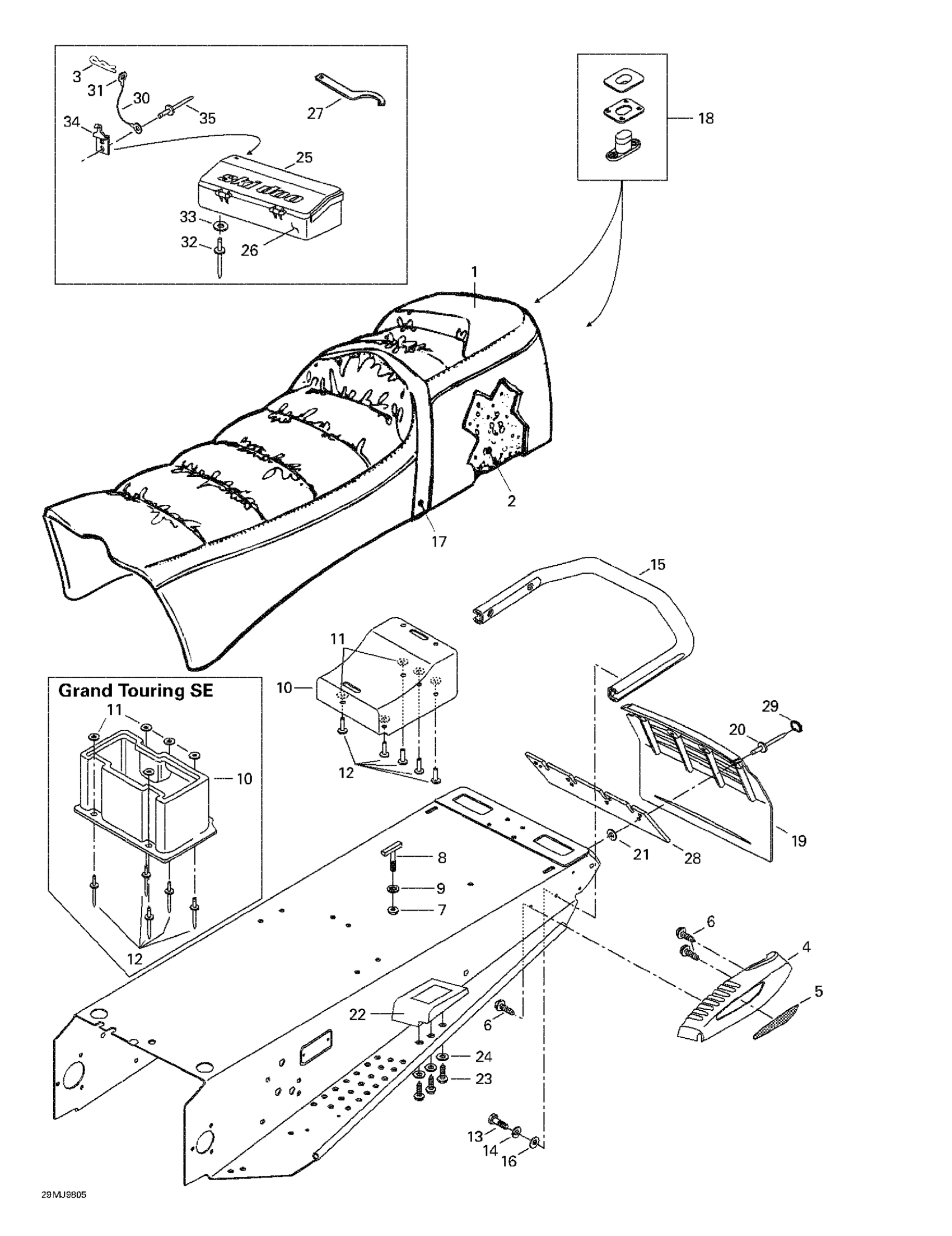 Ski-Doo Grand Touring 700, 1998 Seat And Accessories Diagram